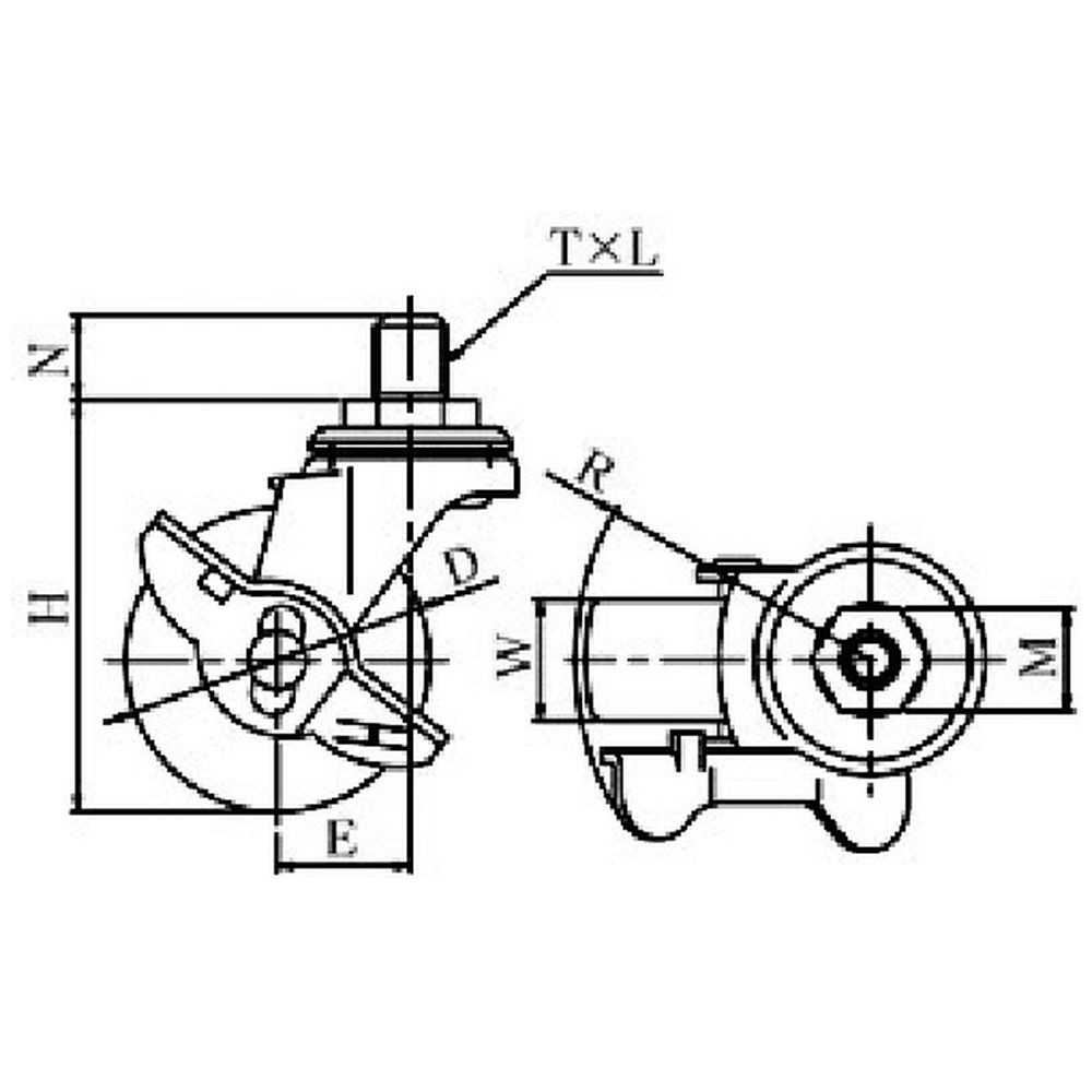 ユーエイ ねじ込み式 自在 キャスター エラストマー 車輪径75mm ストッパー付き Lタイプ LT-S型 ネジ寸法W3/8×14山数16
