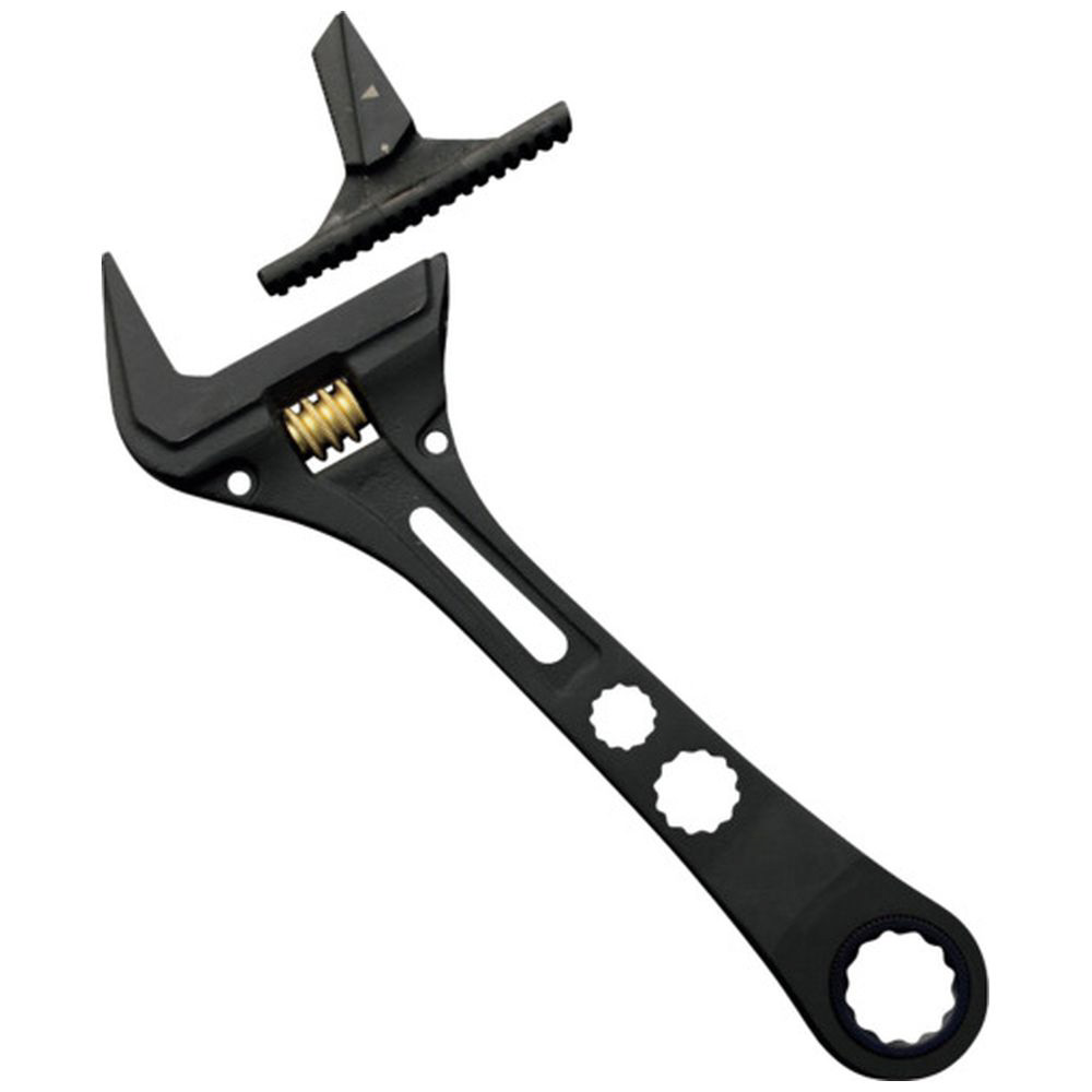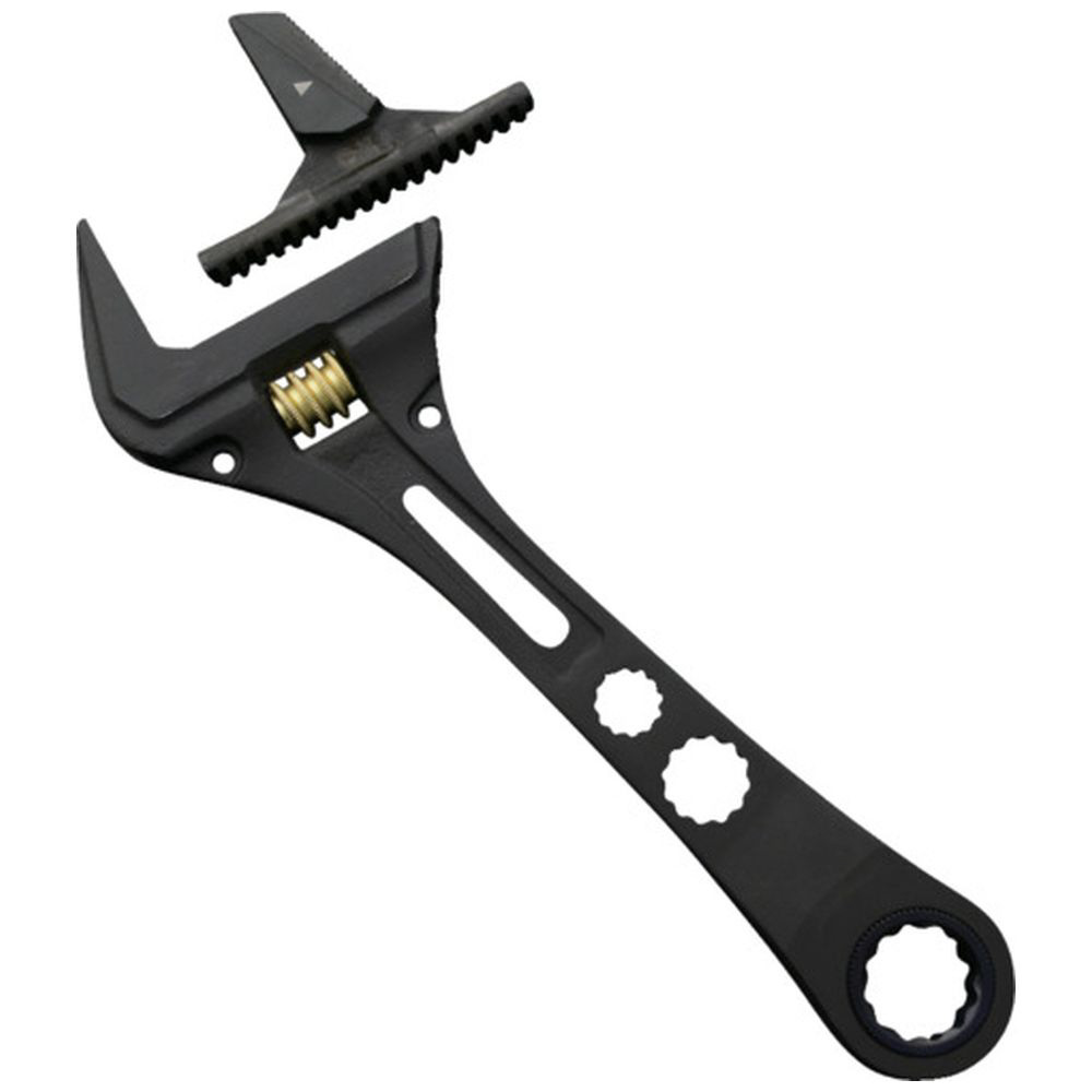 アゴ部分を外して逆向けに取り付けることでパイプレンチとしてお使い頂けるモンキーレンチです。