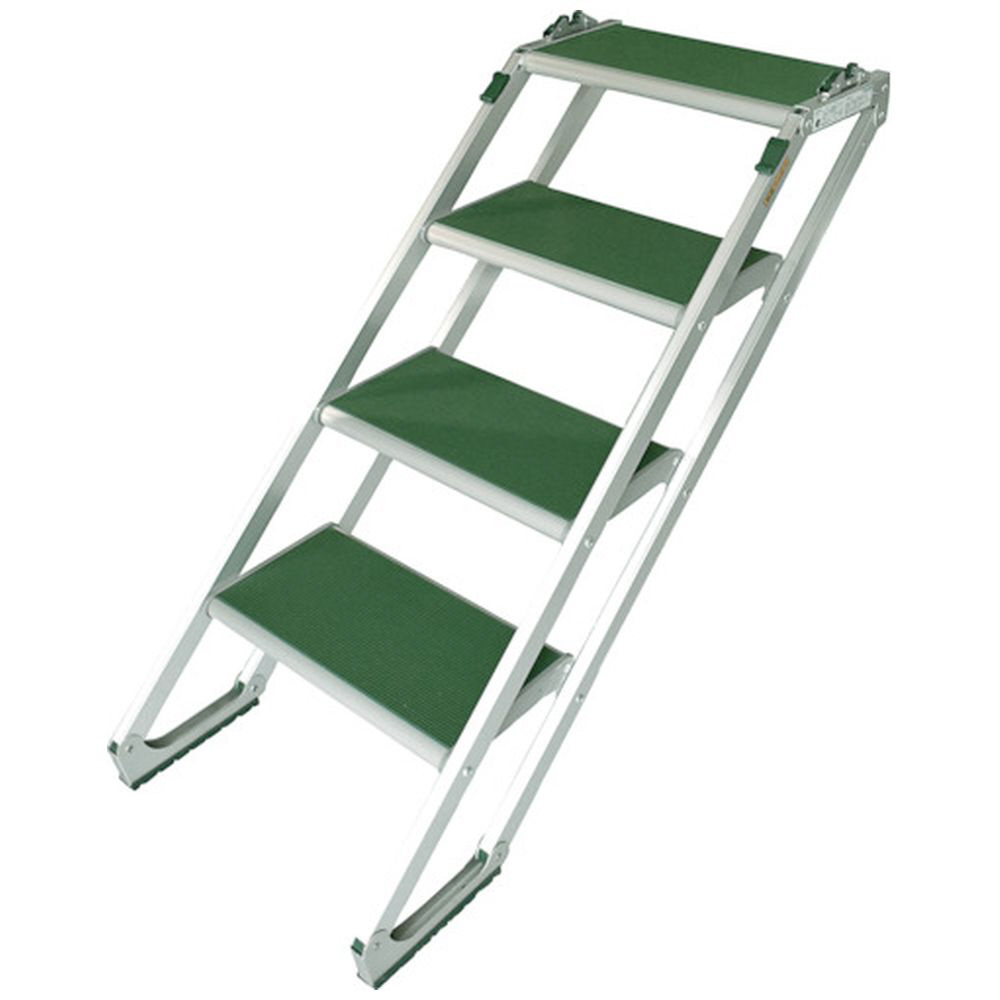 段差のある場所に引っ掛けて固定する簡易階段です。