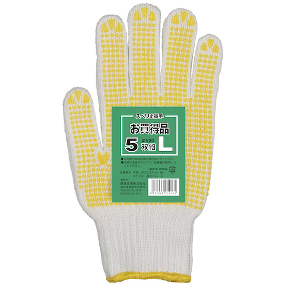 勝星 滑り止め軍手お買得品5双組 L