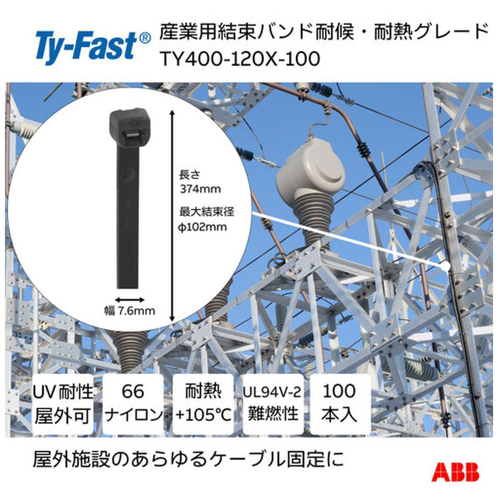 TY-Fast Ty-Fast(タイファスト)産業用ケーブルタイ(結束バンド)耐候・耐熱グレード(黒色)(小袋)幅7.6X長さ400mm100本入り