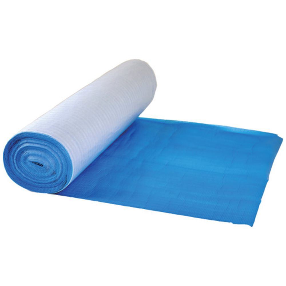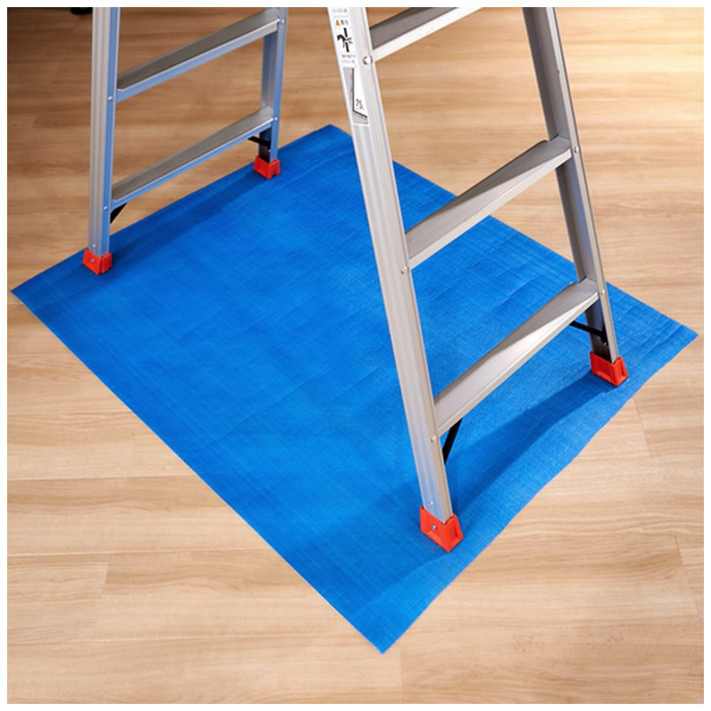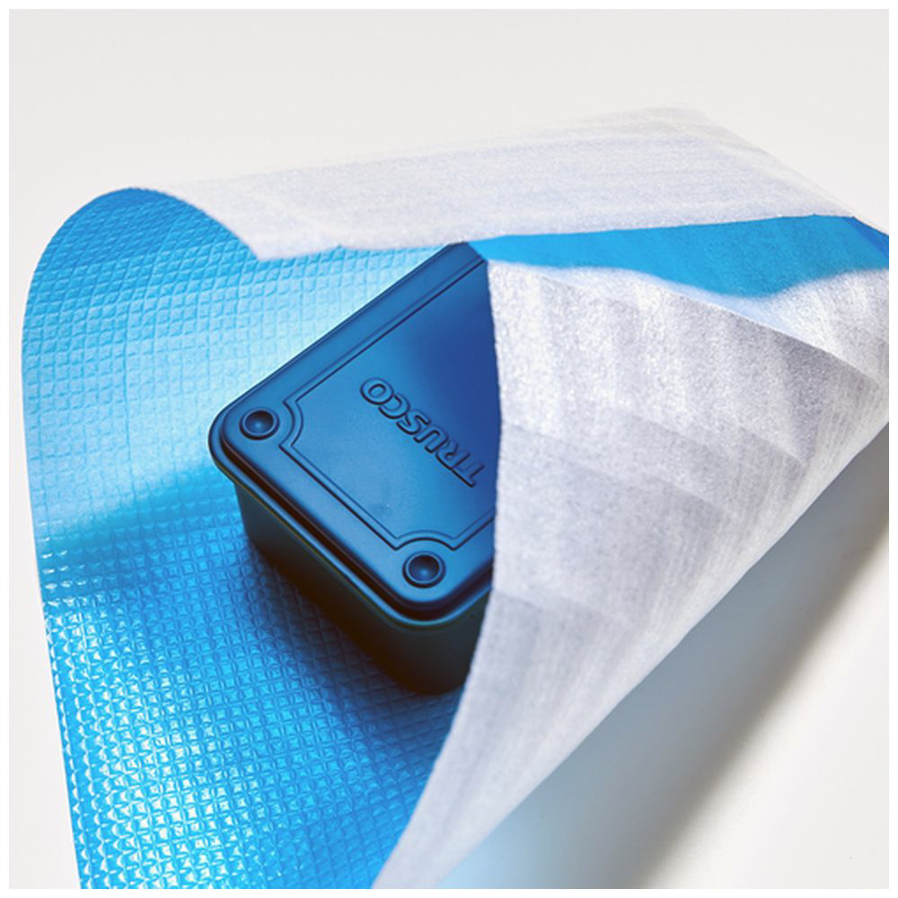 1mm厚のミナフォーム(発泡ポリエチレン)にポリエチレンフィルムを熱ラミネートで貼った薄手養生材のブルーマットです。