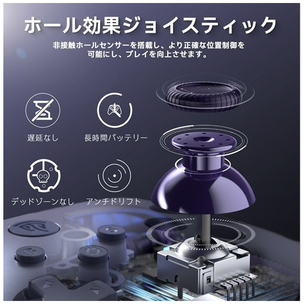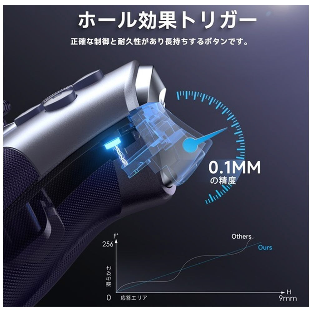 4つのホール効果センサーで強化されたジョイスティックコントロールをお楽しみください。 これらのセンサーは正確で信頼性の高い入力検出を提供し、ゲーム内でのよりスムーズで正確な動作を可能にします。 仮想世界をナビゲートする場合でも、正確に狙いを定める場合でも、当社のホール効果テクノロジーにより、シームレスなゲーム体験が保証されます。