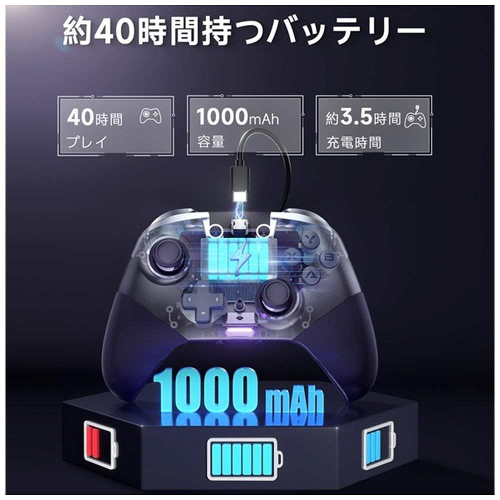 ゲームセッション中に中断される必要はありません。 当社のコントローラーには 1000mAh のアップグレードされたバッテリーが搭載されており、1 回の充電で最大 40 時間のゲームプレイが可能です。 バッテリー寿命が延長されたため、電力切れを心配することなく、より長くゲームに没頭できます。