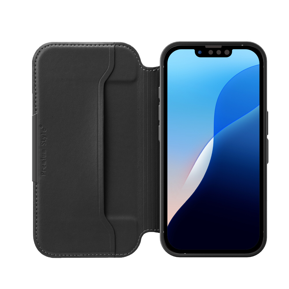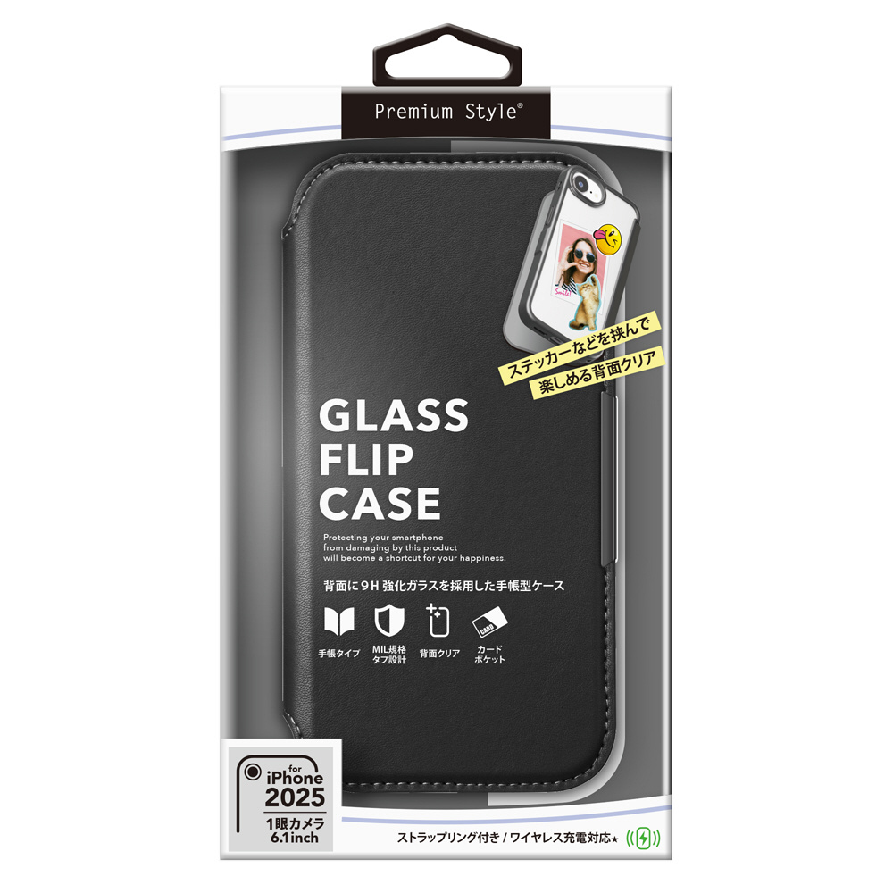 iPhone 16e ガラスフリップケース Premium Style ブラック PG-25KGF01BK