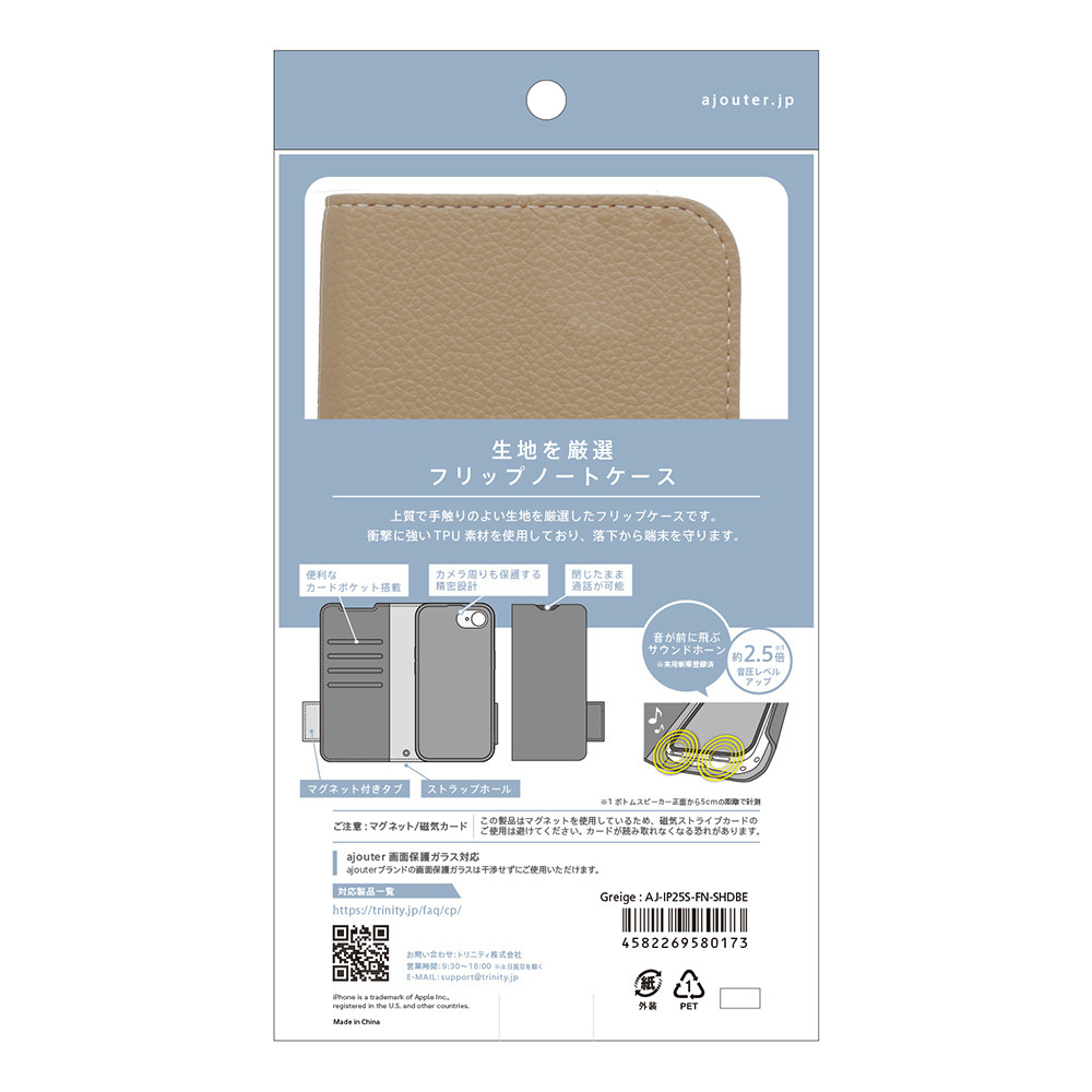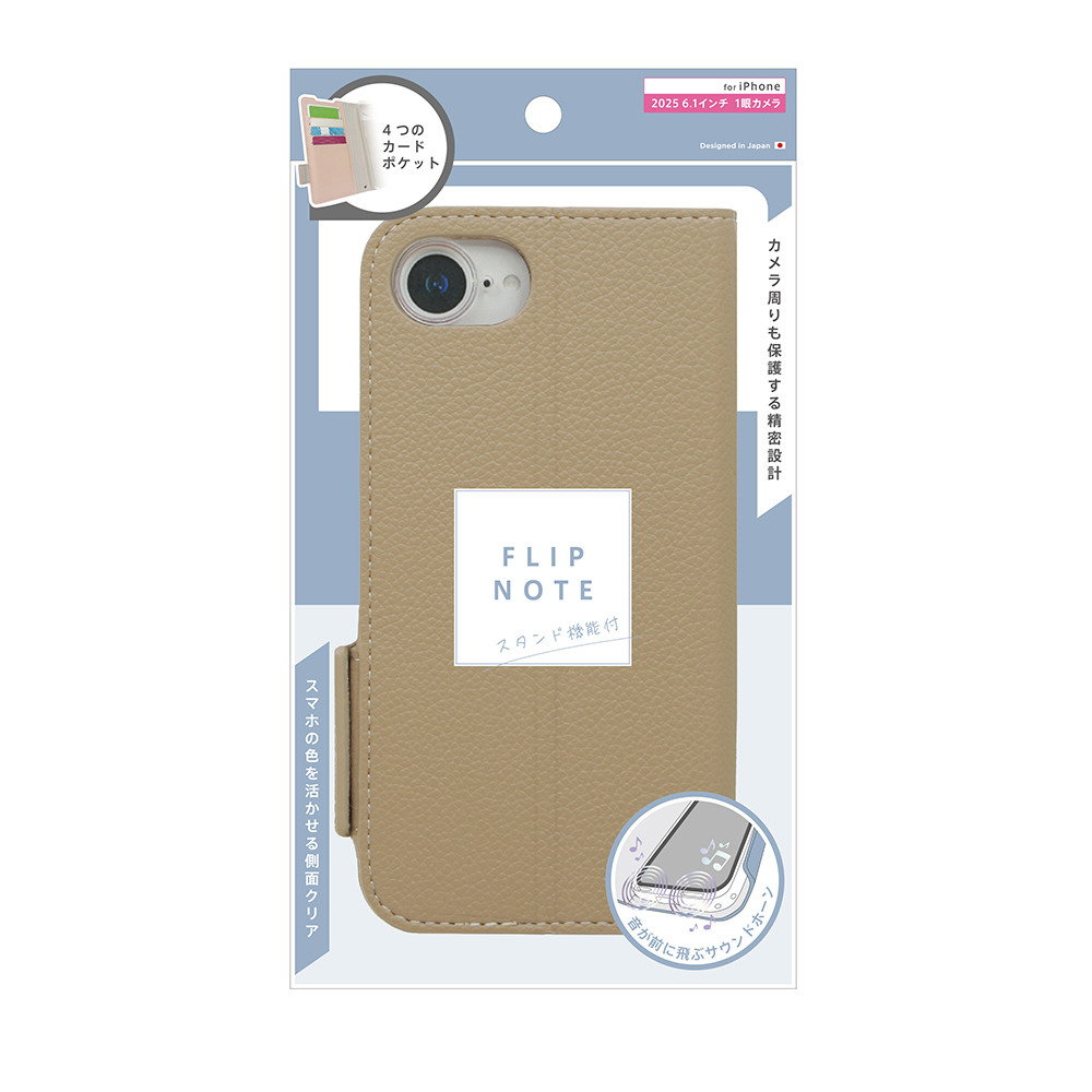 iPhone 16e ajouter アジュテ [FlipNote] 耐衝撃フリップノートケース グレージュ AJ-IP25S-FN-SHDBE