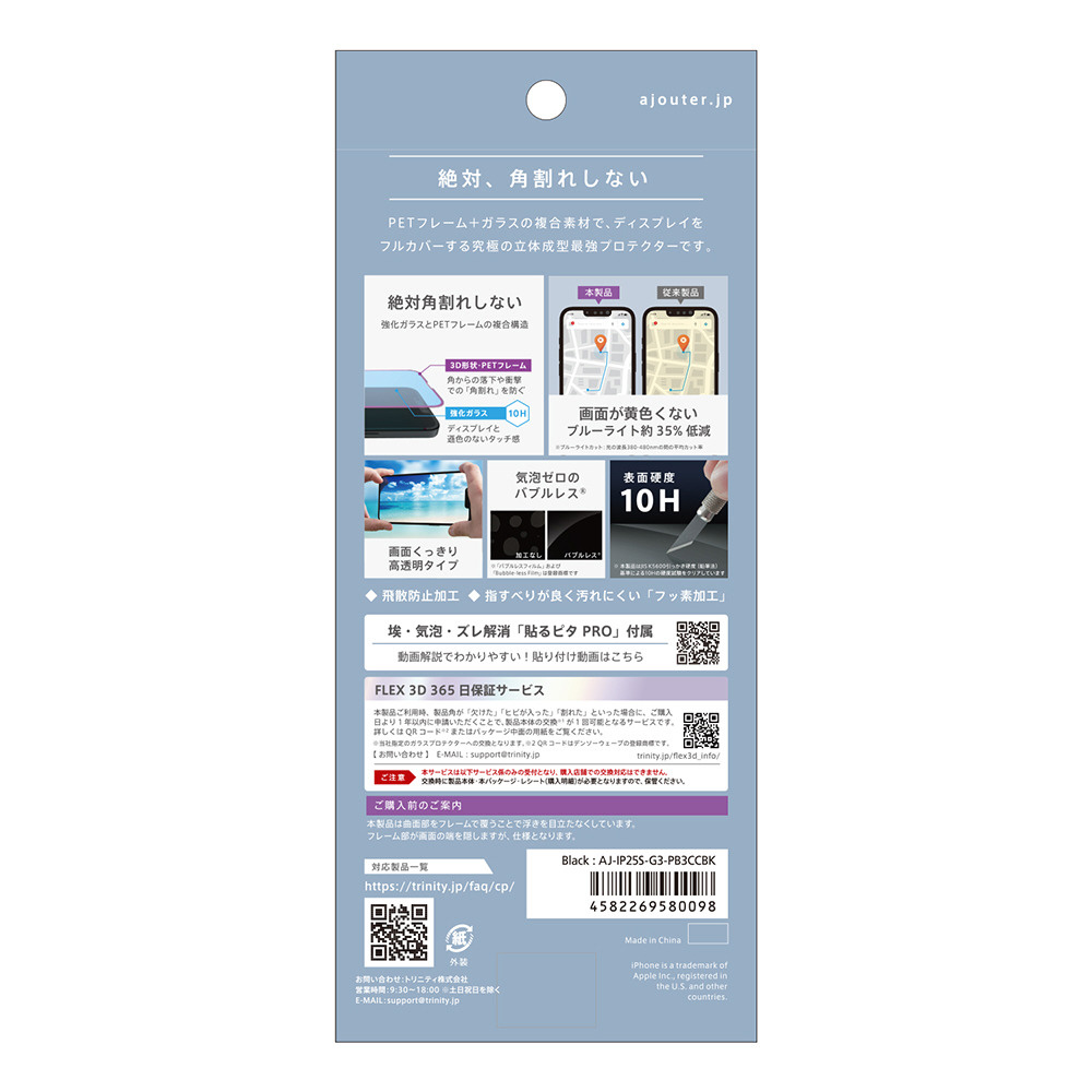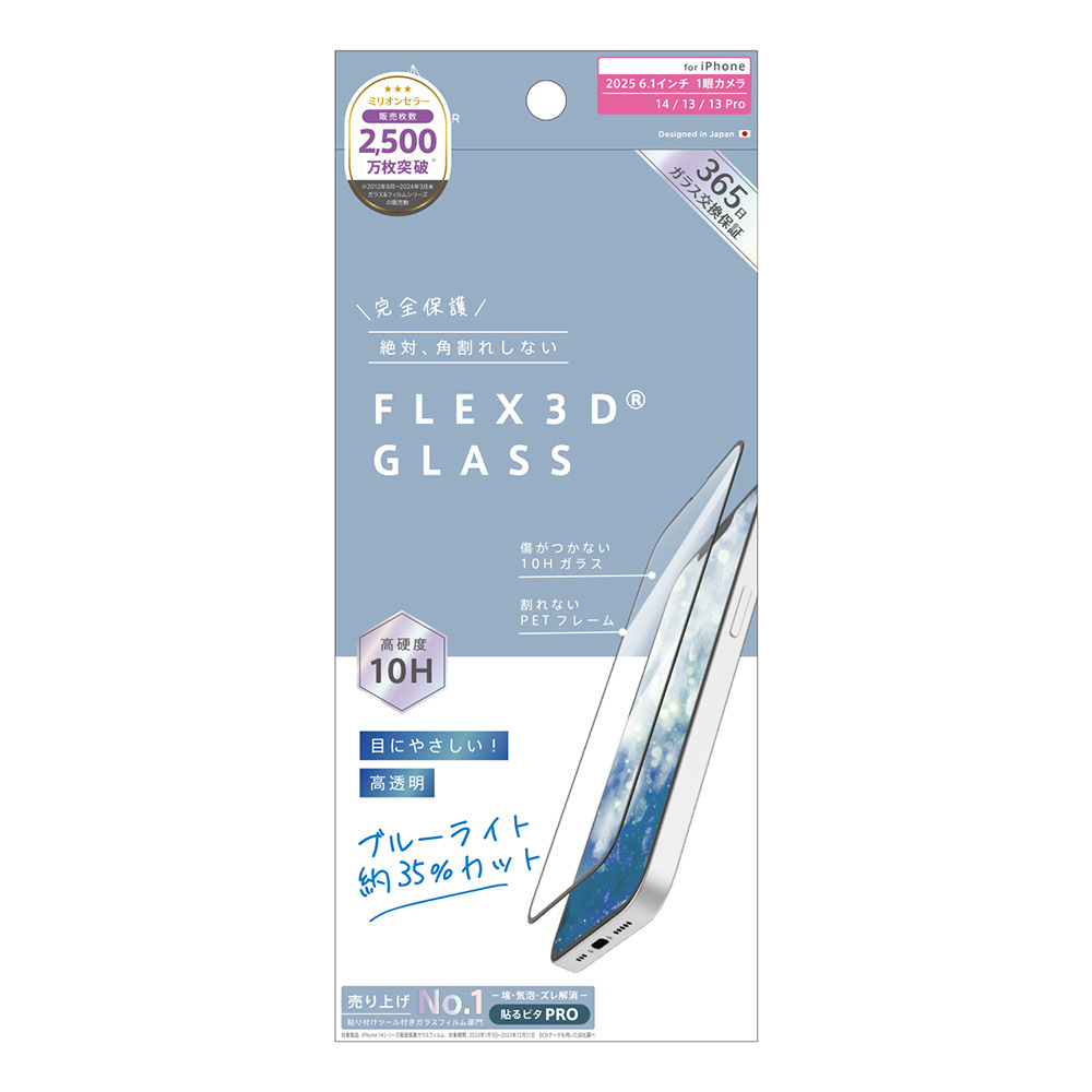iPhone 16e ajouter アジュテ [FLEX 3D] 黄色くないブルーライト低減 複合フレームガラス ブラック AJ-IP25S-G3-PB3CCBK