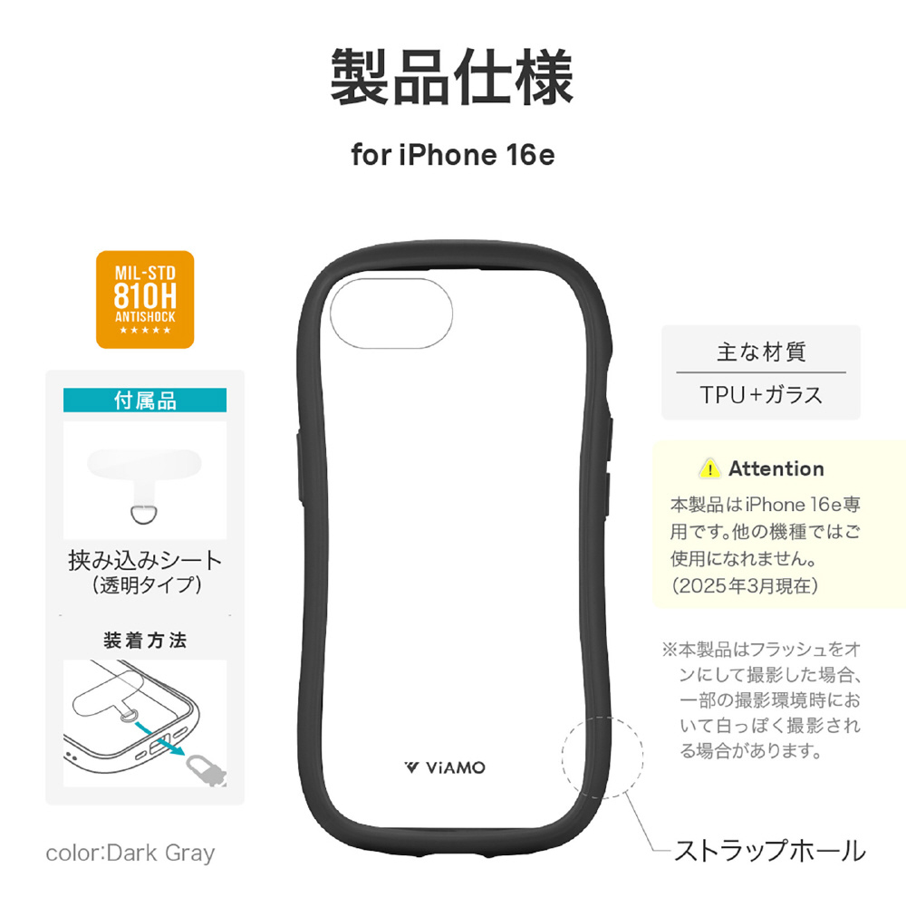 iPhone17e/16e 耐傷・耐衝撃ハイブリッドケース 「ViAMO freely」 ダークグレー LN-ISS24VMFGY