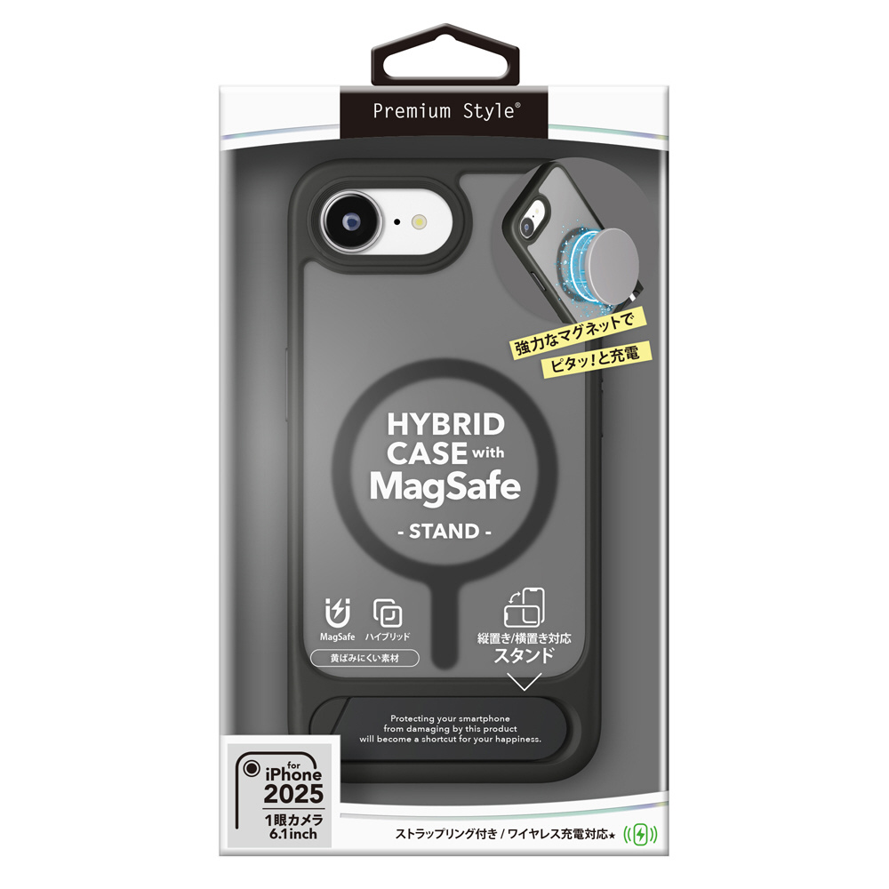iPhone 16e MagSafe対応 スタンド付ハイブリッドケース Premium Style マットブラック PG-25KMH09BK
