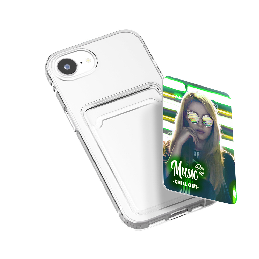 写真やステッカーを背面のポケットに入れてアレンジが可能なiPhone 16e用 クリアポケットケース
