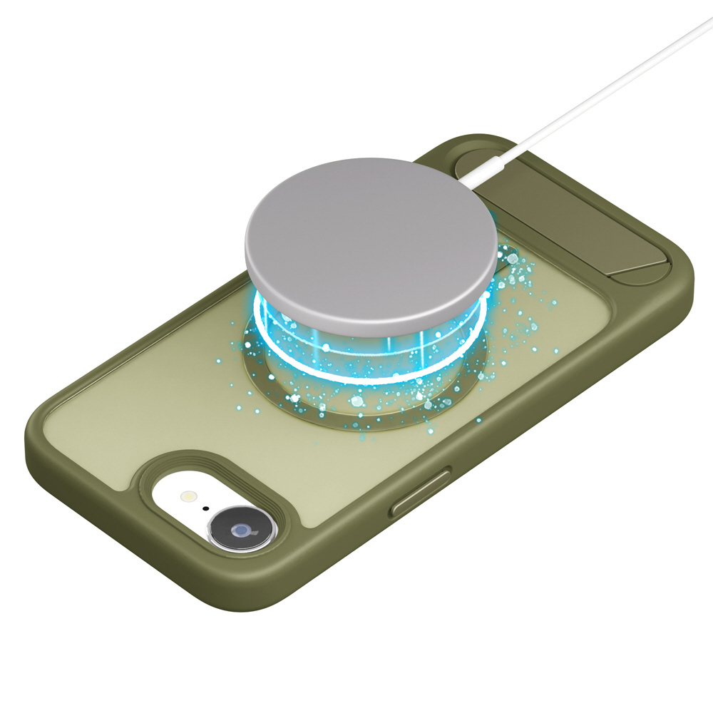 iPhone 16e MagSafe対応 スタンド付ハイブリッドケース Premium Style マットカーキー PG-25KMH11GR