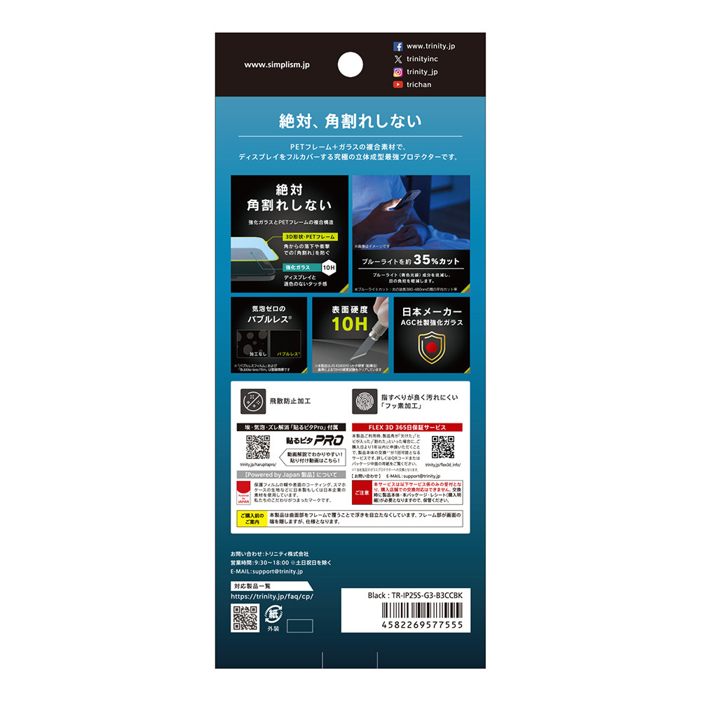iPhone 16e [FLEX 3D] 黄色くないブルーライト低減 複合フレームガラス ブラック TR-IP25S-G3-B3CCBK
