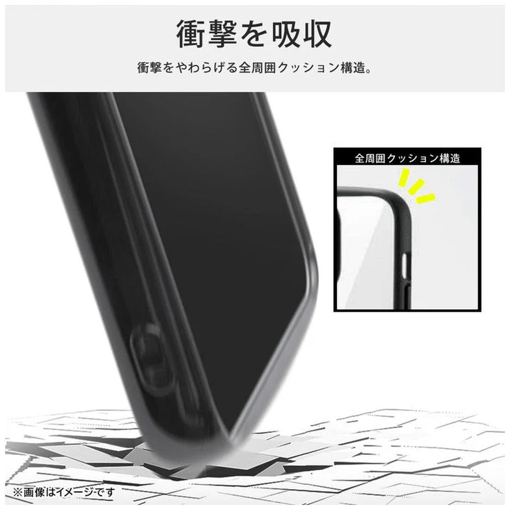 衝撃をやわらげる全周囲クッション構造。高い透明感 クリア長持ち。