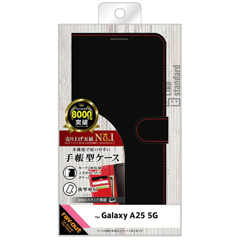 Galaxy A25 Like standard 耐衝撃 マグネットベルト シンプル 手帳型レザーケース / ブラック_レッド RT-GA25ELC1BR