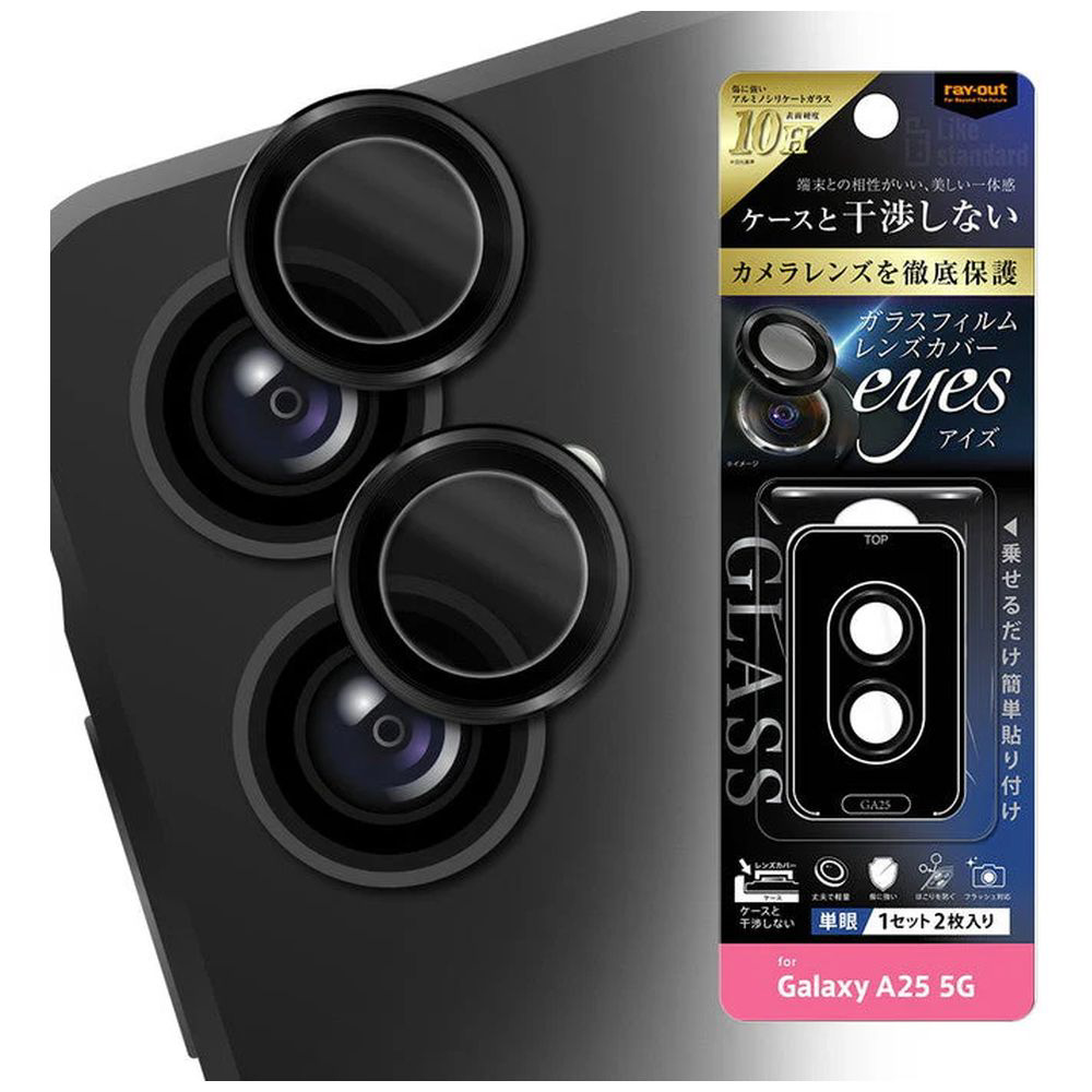 Galaxy A25 Like standard カメラ ガラスフィルム 10H eyes 単眼 レンズカバー 2枚 1セット入り / ブラック RT-GA25FGCALCB