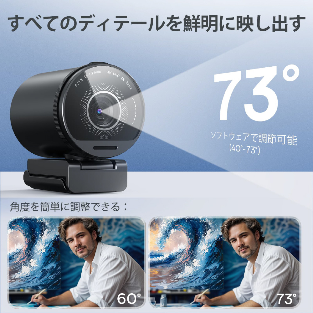 EMEETLINKを使用して視野角を40°から73°まで調整できます。