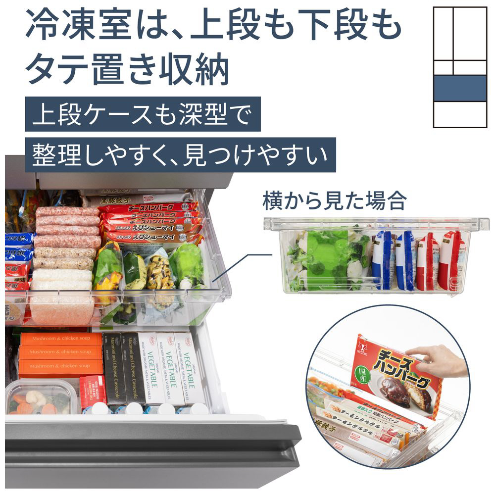 設置スペースはコンパクトに。冷凍室は大容量に。フレンチドア(両開き)タイプ
