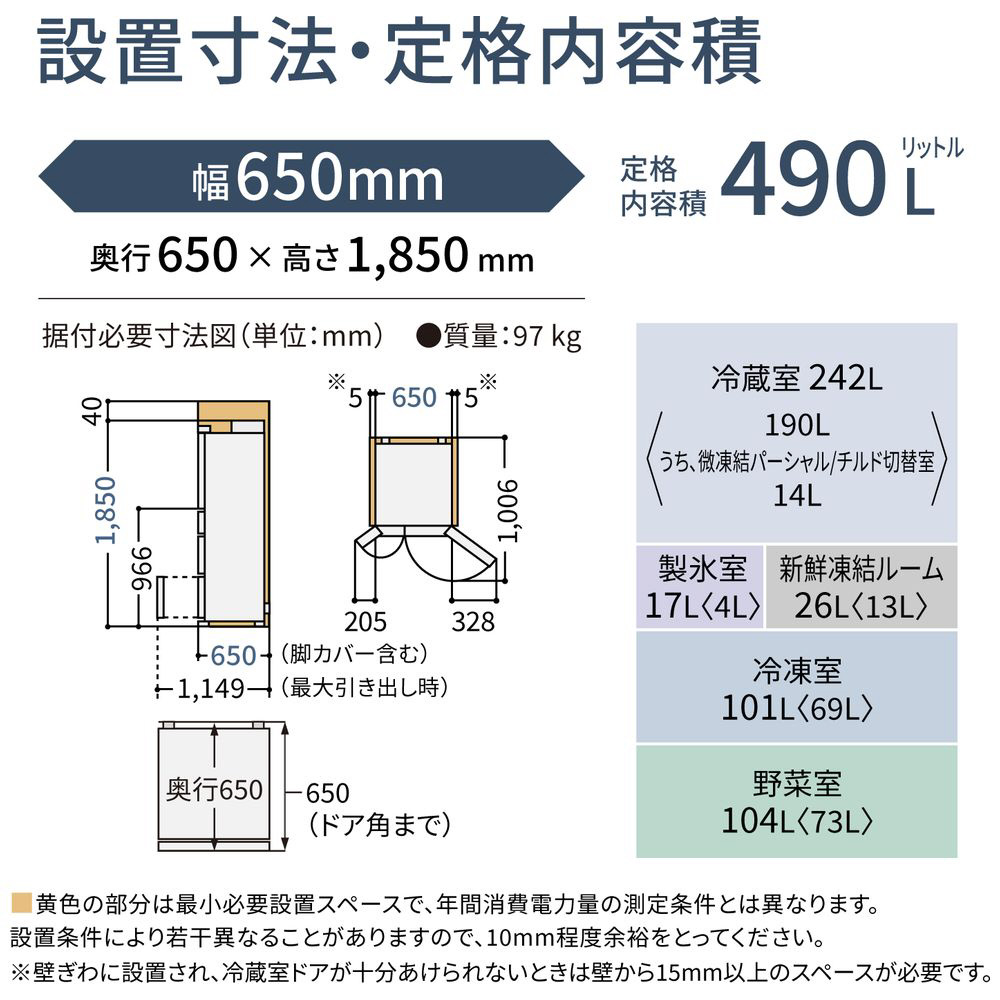 設置スペースはコンパクトに。冷凍室は大容量に。フレンチドア(両開き)タイプ