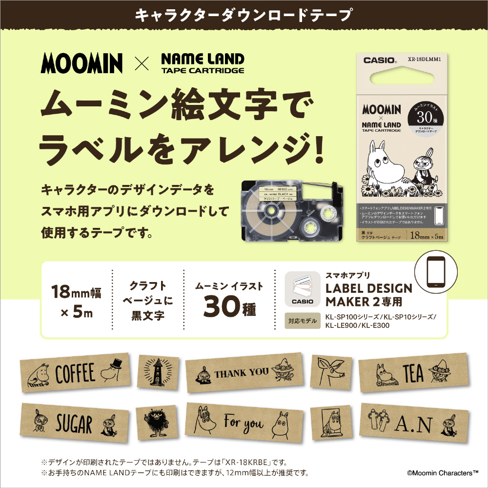 ラベルライターNAME LAND用テープ  キャラクターダウンロードテープ ベージュ XR-18DLMM1 [黒文字 /18mm幅]