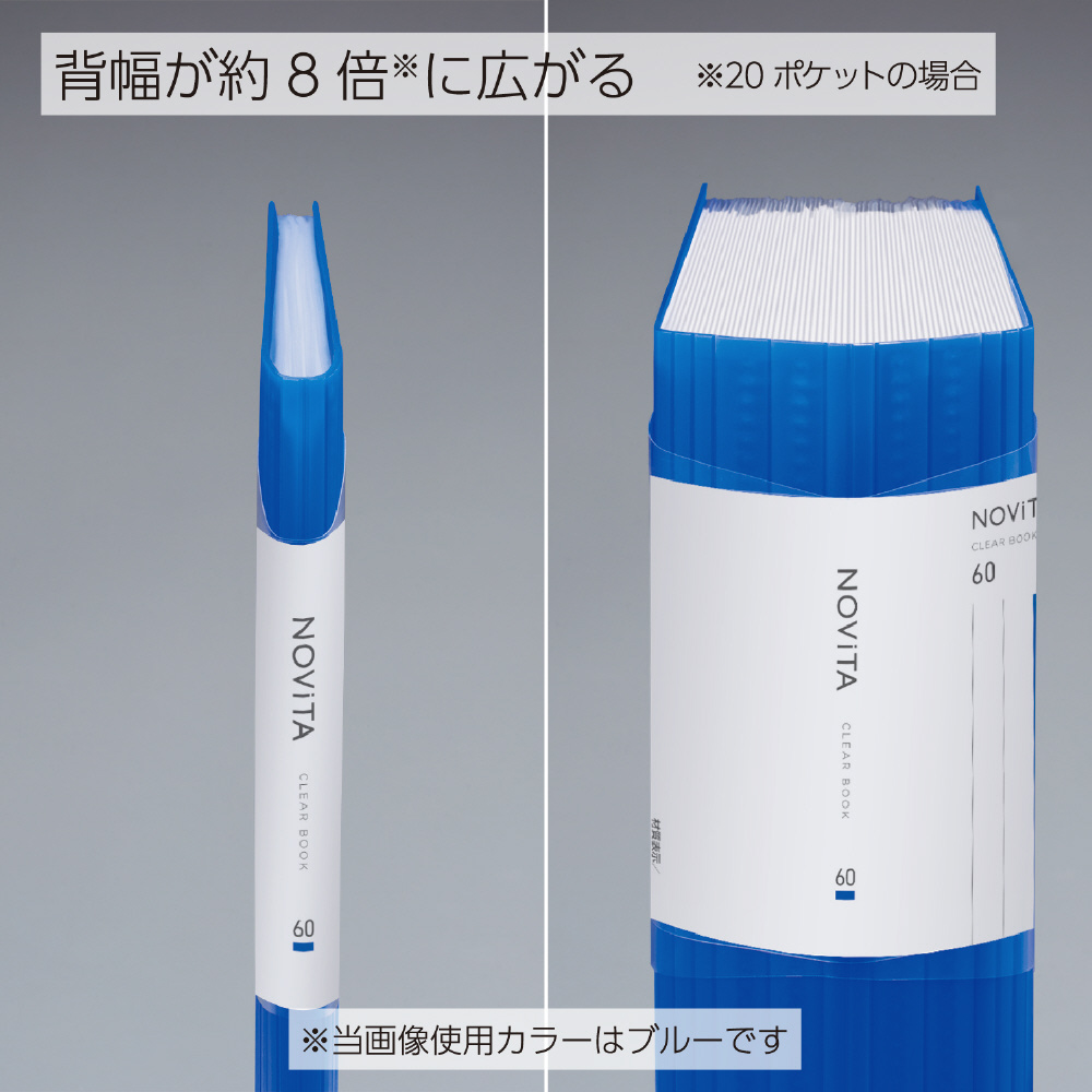 書類の量に応じて背幅が変わるから、かさばらずに収容できるクリヤーブック。