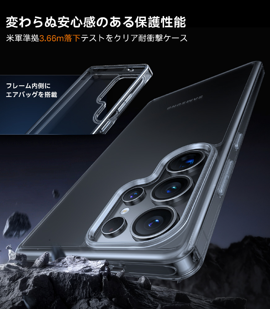 ・米軍規格「MIL-STD-810G」の3倍の落下試験をクリアし、3.66mからの落下に耐えます。
