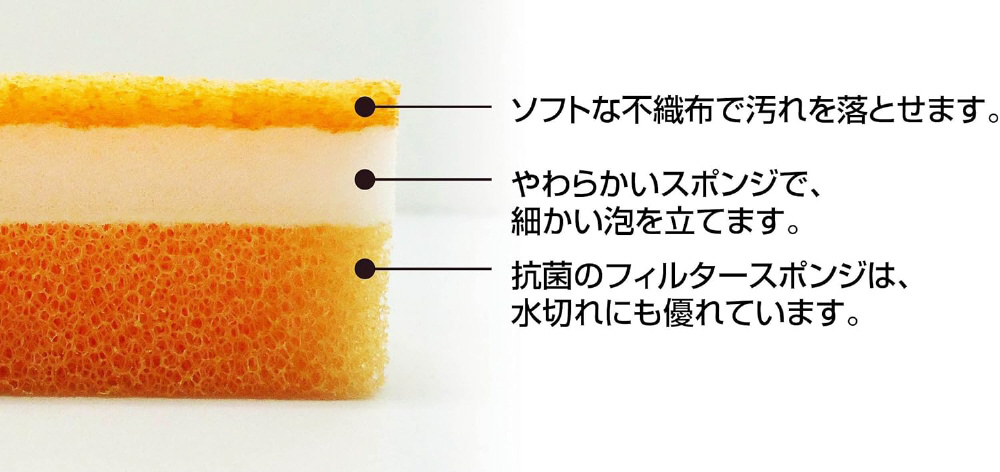 泡立ちがよく、水切れもよいフィルタースポンジを使用。
