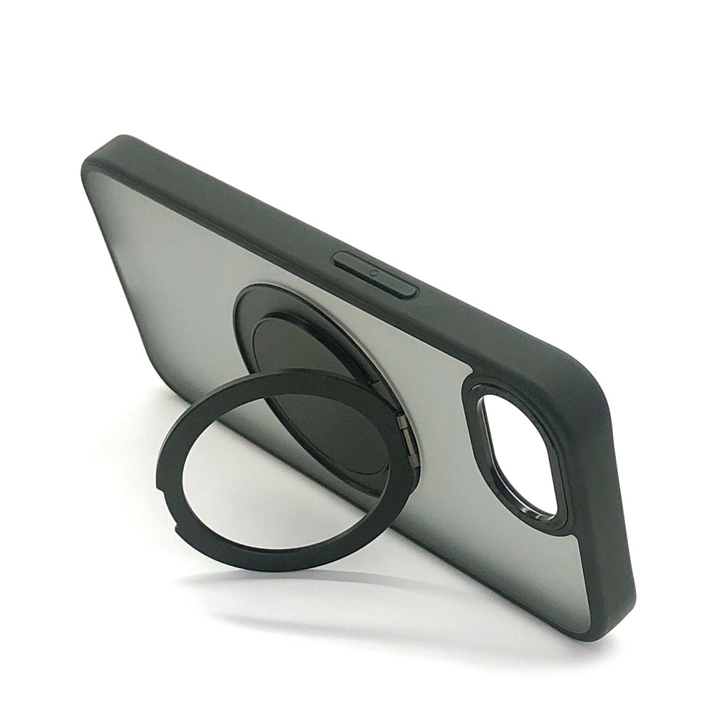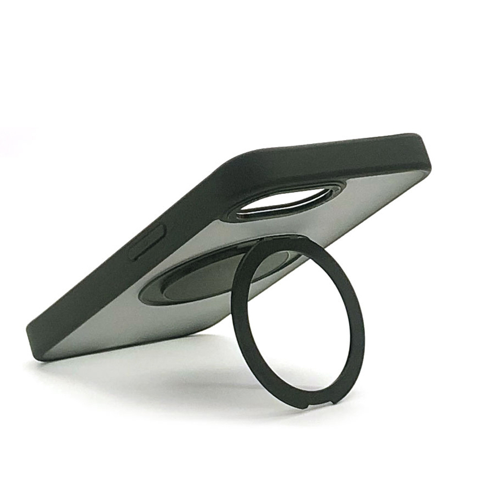 落下防止+卓上スタンド機能を併せ持つ360°回転リング付き。