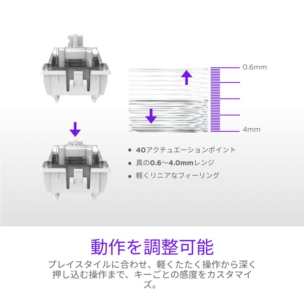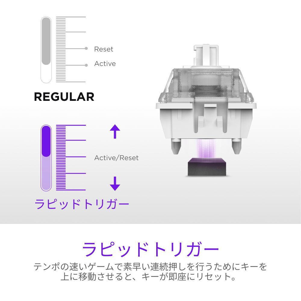 ラピッドトリガーとは、キーの入力・解放をそれぞれ個別に設定する事で、キーボードによる操作を高速化・高精度化させる機能です。