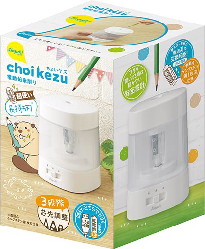 電動鉛筆削り(芯先調整付 乾電池・USB両対応) リビガク choikezu(ちょいケズ) ホワイト LV-1924-W