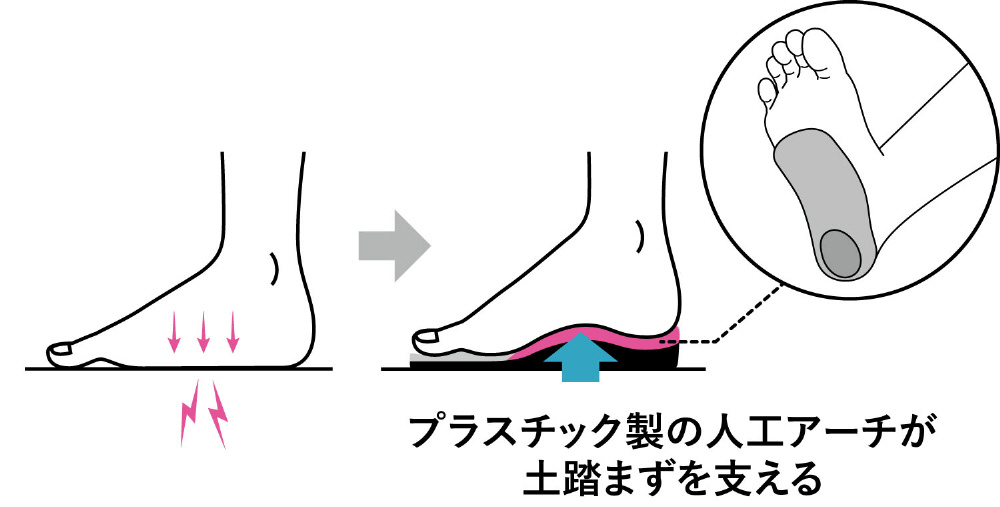 土踏まずの悩みを人工アーチが支えて緩和