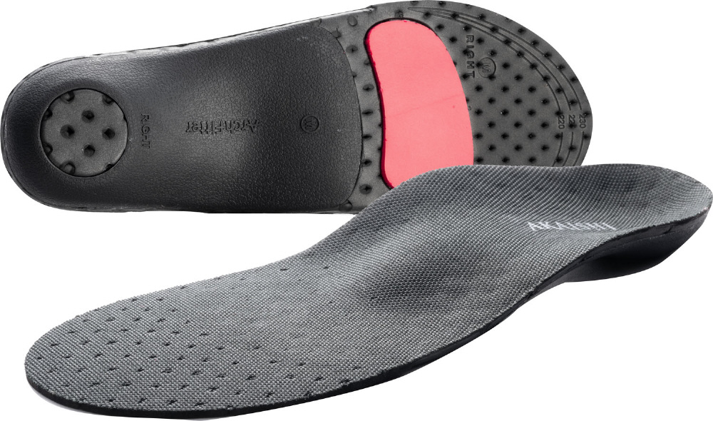 AKAISHIインソールの人工アーチは、体重がかかってもつぶれること無く土踏まずを支えることができます。