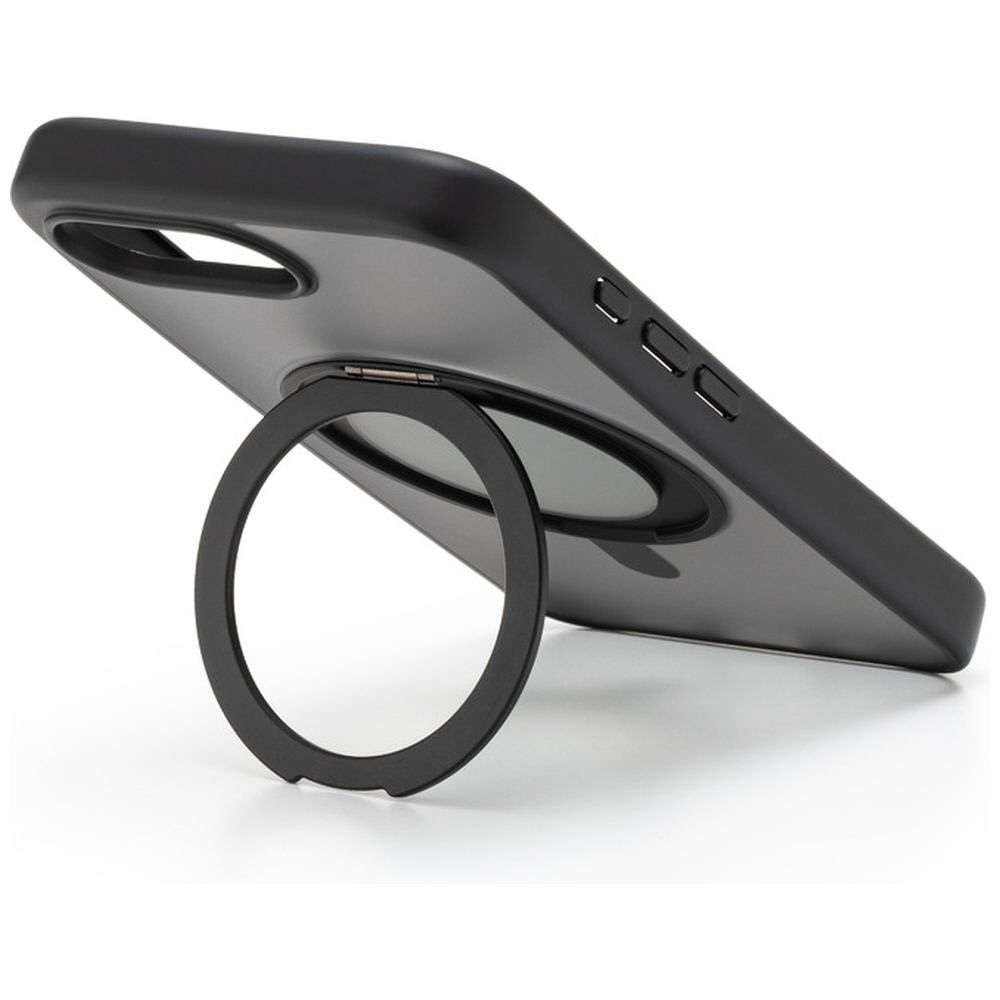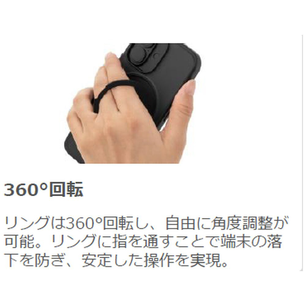 リングは360°回転し、自由に角度調整が可能。リングに指を通すことで端末の落下を防ぎ、安定した操作を実現。