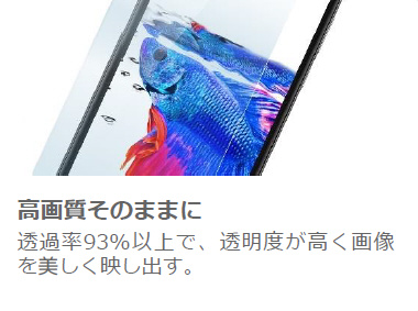 透過率93%以上で、透明度が高く画像を美しく映し出す。
