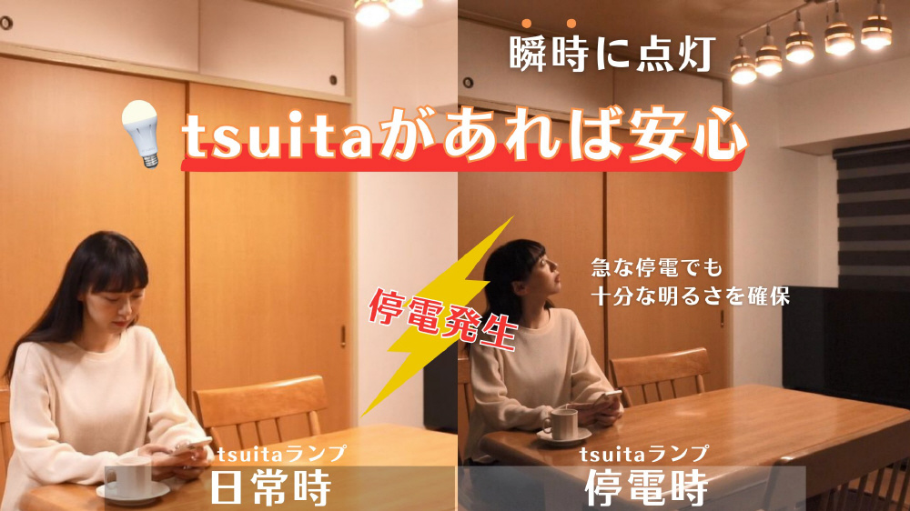 ふだん使いの延長線上にある防災LED電球。通常であれば特別な工事や費用がかかる非常用(停電時)の照明確保が、安価で誰でも簡単に取付(電球の差替え)ができます。