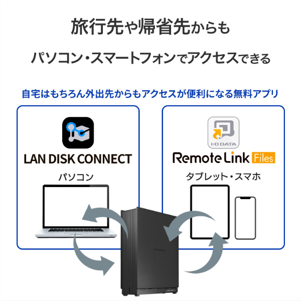 スマートフォンとHDDがネットワークでつながるため、パソコンを経由する必要がありません。