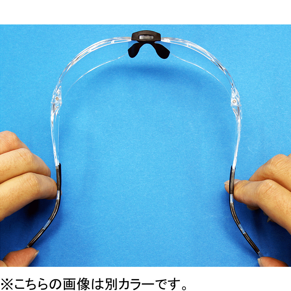 鼻部にラバーのパッドか付いているスポーティータイプの保護メガネです。 頭をしっかりホールドし、激しい動きでもズレません。 レンズにふちがないため視野が広く、視界変化のほとんどないメガネです。