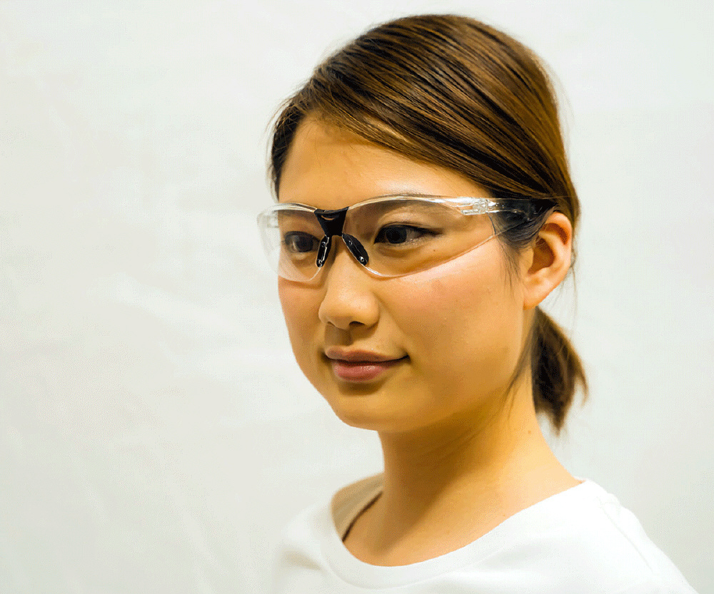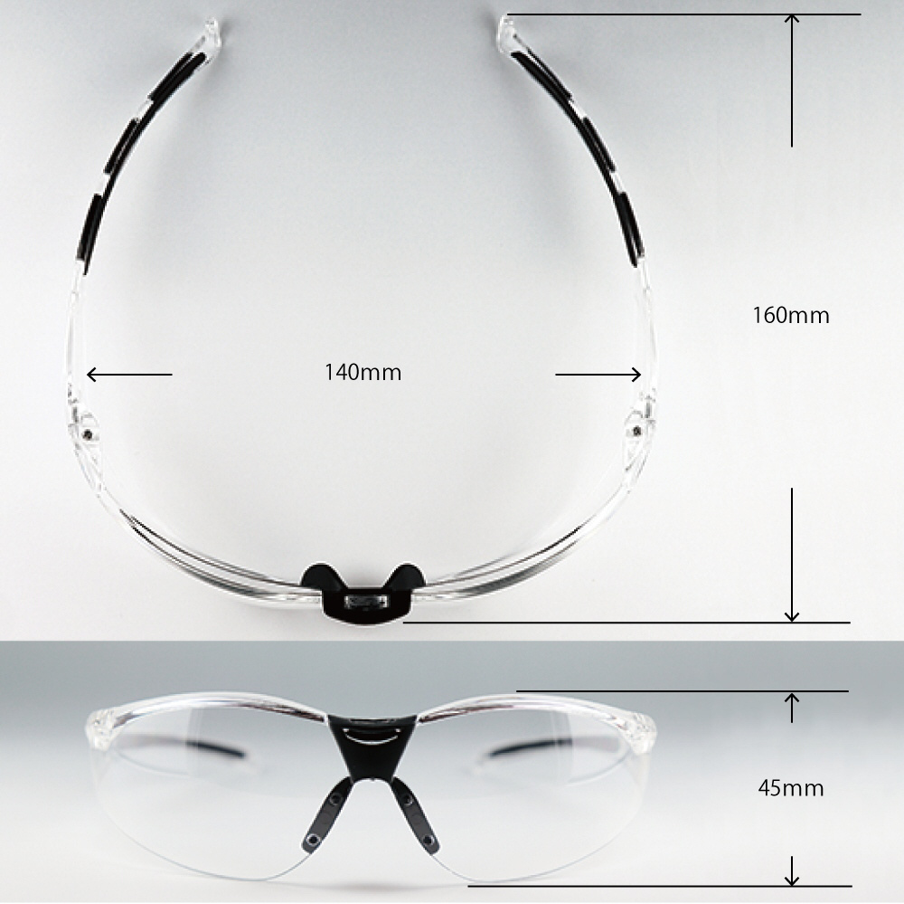鼻部にラバーのパッドか付いているスポーティータイプの保護メガネです。 頭をしっかりホールドし、激しい動きでもズレません。 レンズにふちがないため視野が広く、視界変化のほとんどないメガネです。