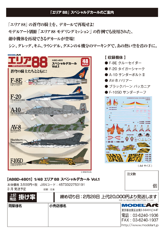 ■モデルアート別冊「エリア88モデリングミッション」でも使用された、劇中機体を再現できるデカール