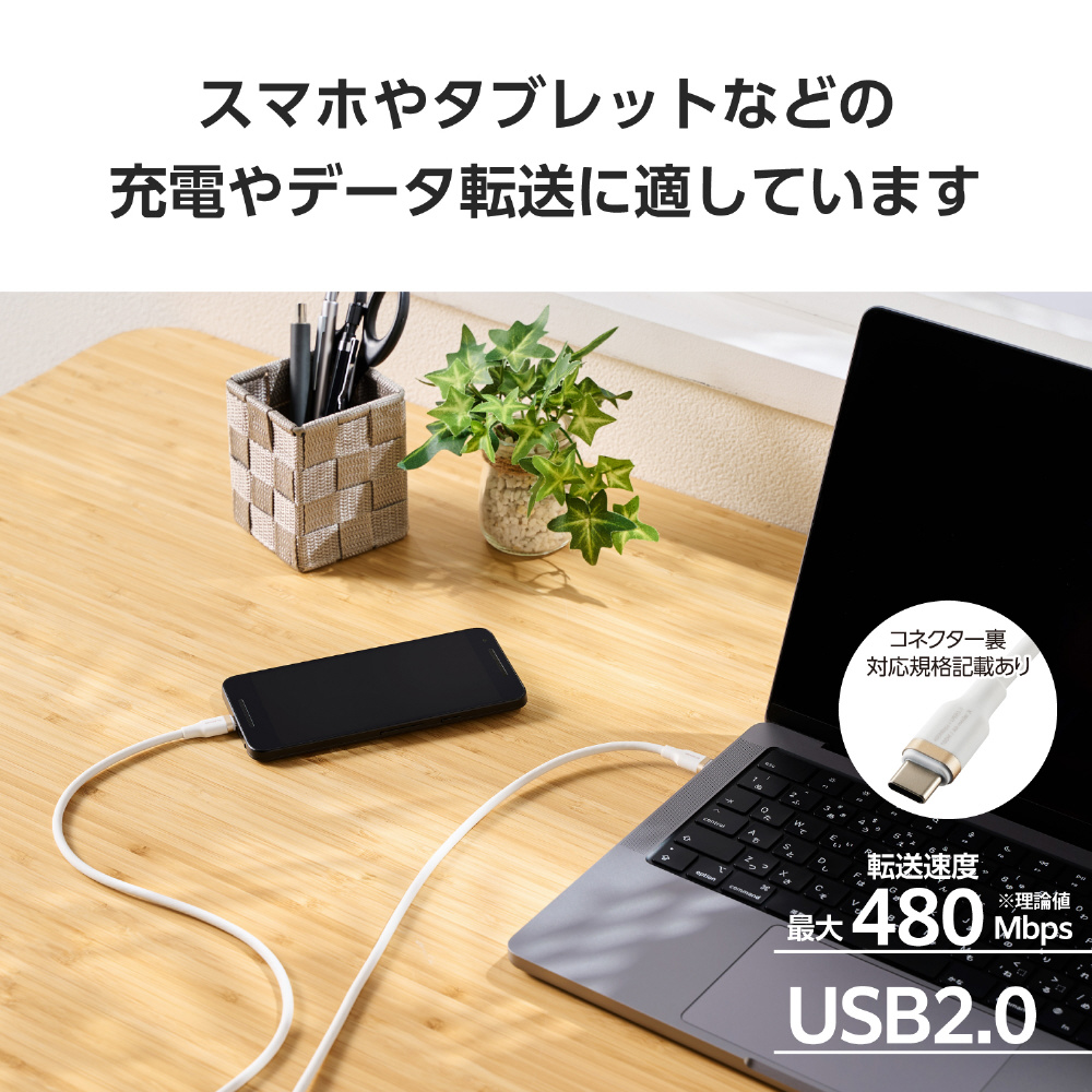スマートフォンもパソコンも、これ1本で高速充電!やわらかく扱いやすいUSB Type-C(TM) - USB Type-Cケーブルです。