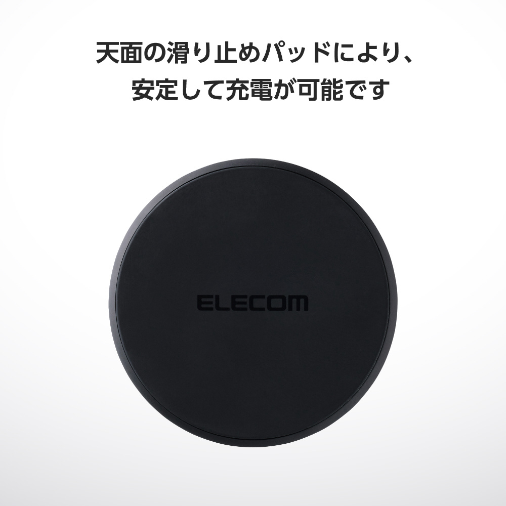 対応するAndroidやiPhoneを置くだけで充電できる、Qi規格ワイヤレス充電器です。手のひらサイズで持ち運びに便利。天面に滑り止めパッドを配置しており、スマートフォン本体への傷やバイブレーションによる滑り落ちを抑制します。USB Power Delivery対応のAC充電器を接続することで最大12Wの高速充電が利用できます。