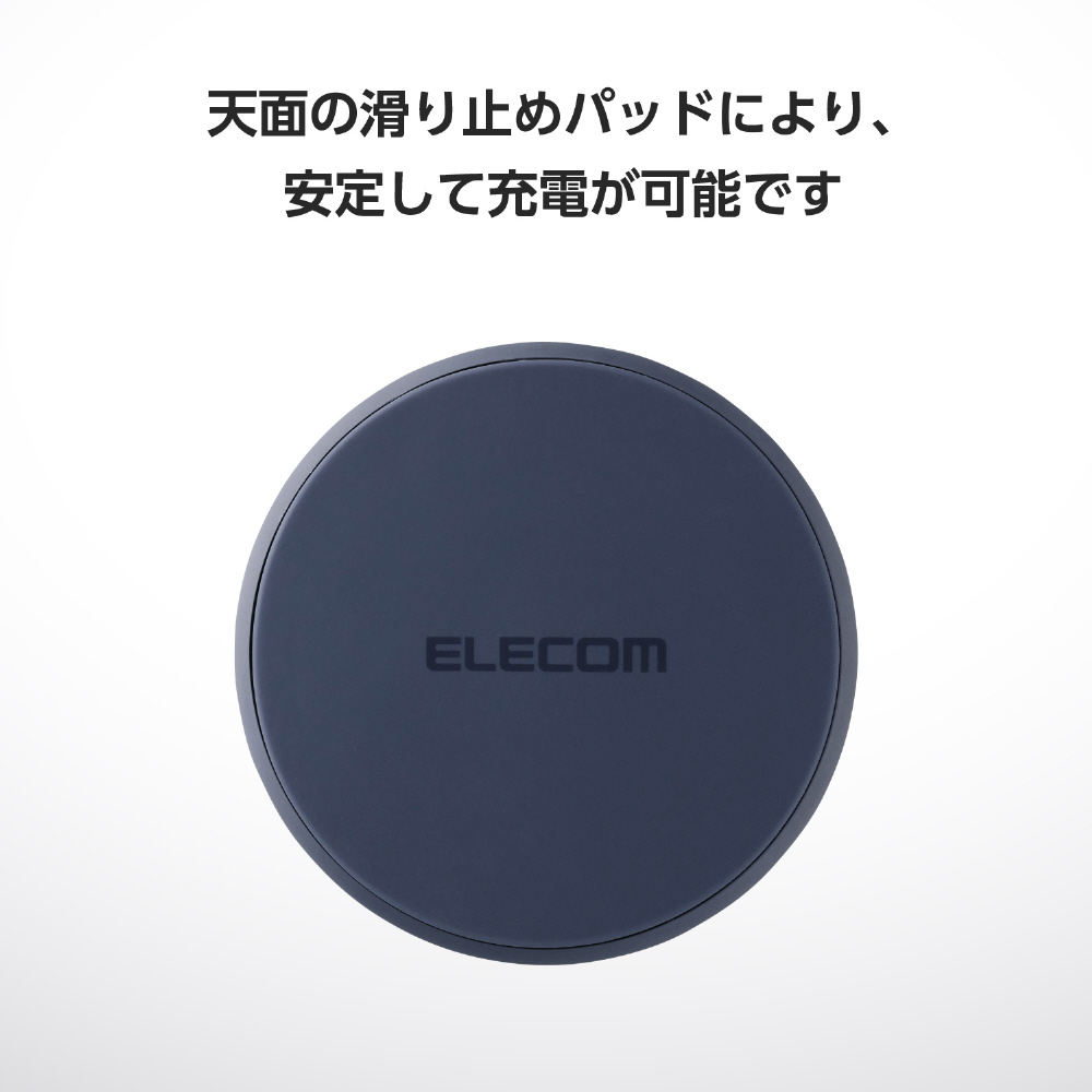 ワイヤレス充電器 Qi 認証 12W / 10W / 7.5W / 5W 卓上 充電器 ケーブル付属 1m 置くだけ充電 薄型 コンパクト 【 iPhone AirPods Android Pixel Xperia Galaxy 等対応 】 ネイビー W-QA28NV