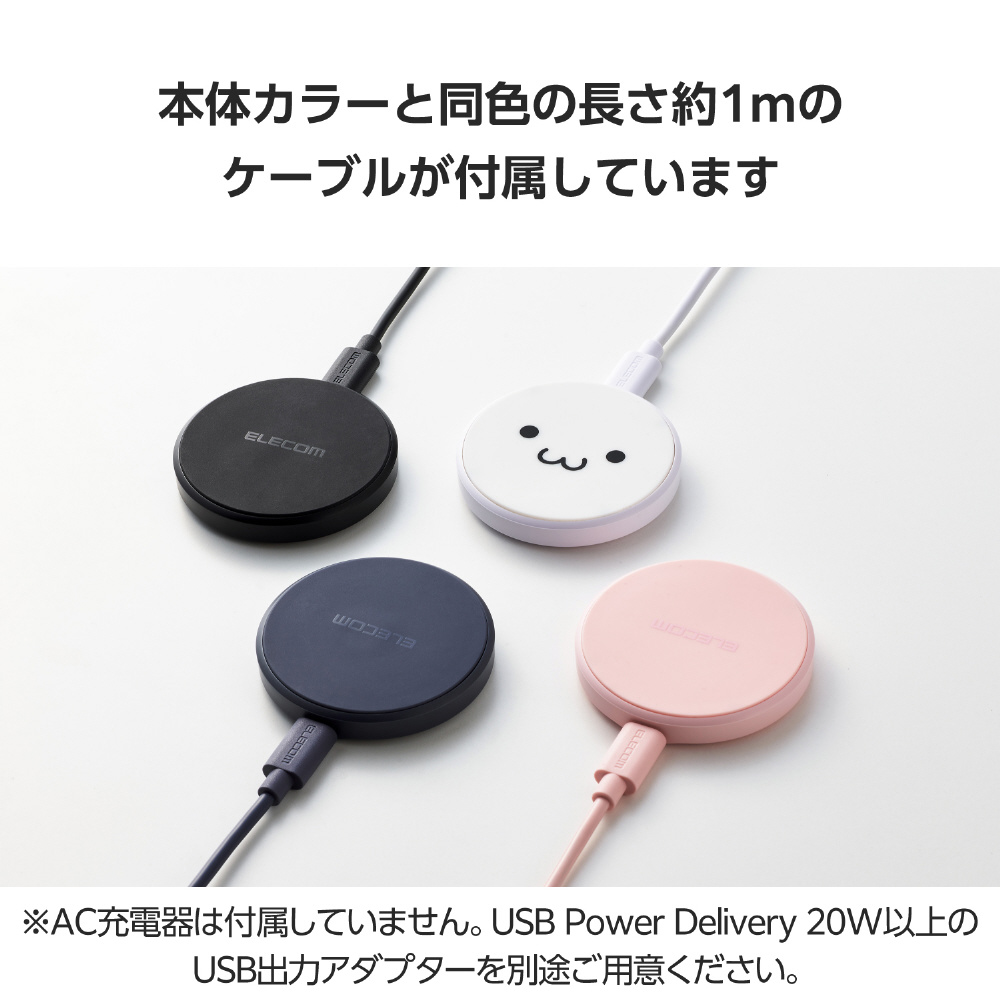対応するAndroidやiPhoneを置くだけで充電できる、Qi規格ワイヤレス充電器です。手のひらサイズで持ち運びに便利。天面に滑り止めパッドを配置しており、スマートフォン本体への傷やバイブレーションによる滑り落ちを抑制します。USB Power Delivery対応のAC充電器を接続することで最大12Wの高速充電が利用できます。