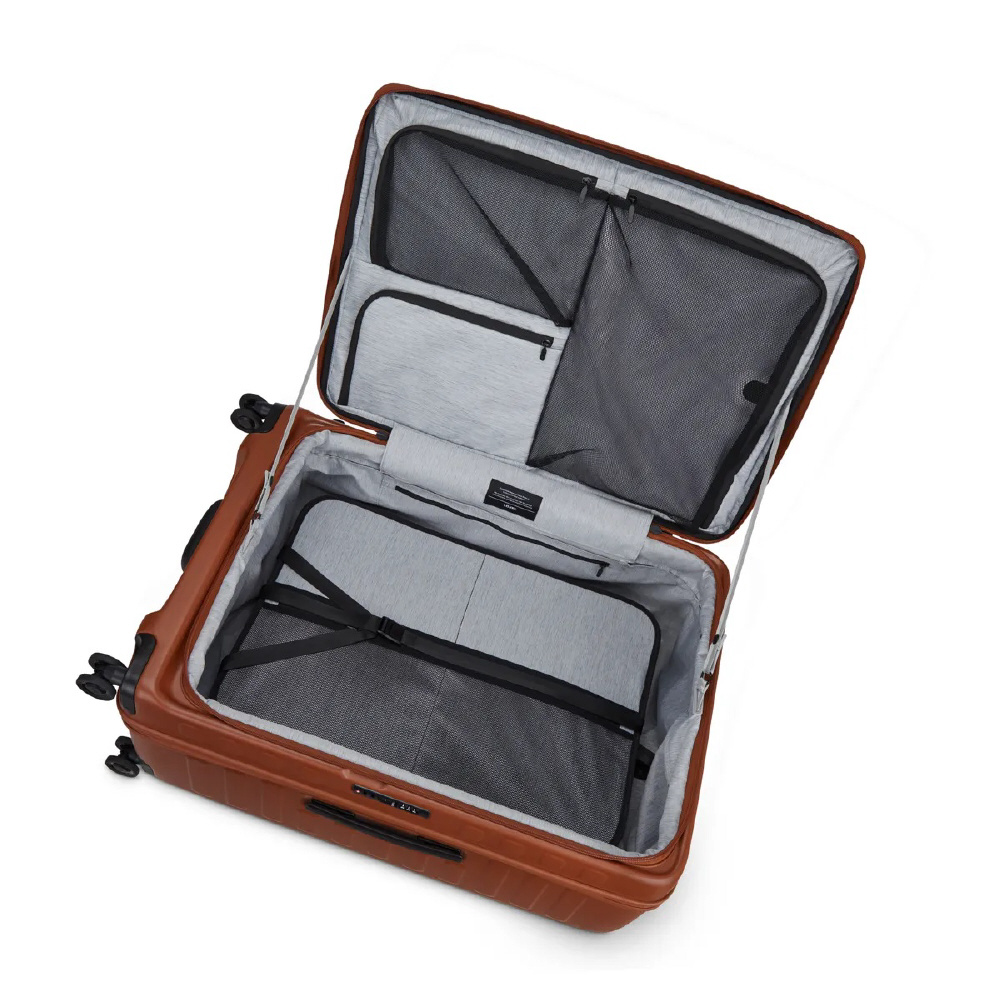 スーツケース内部の両側にジッパー ポケット、フードの下に2 つのメッシュ ポケットとパッド入りのテック ポケット、4 ポケットの圧縮ディバイダーにより、これまでにない方法でアイテムを整理できます。