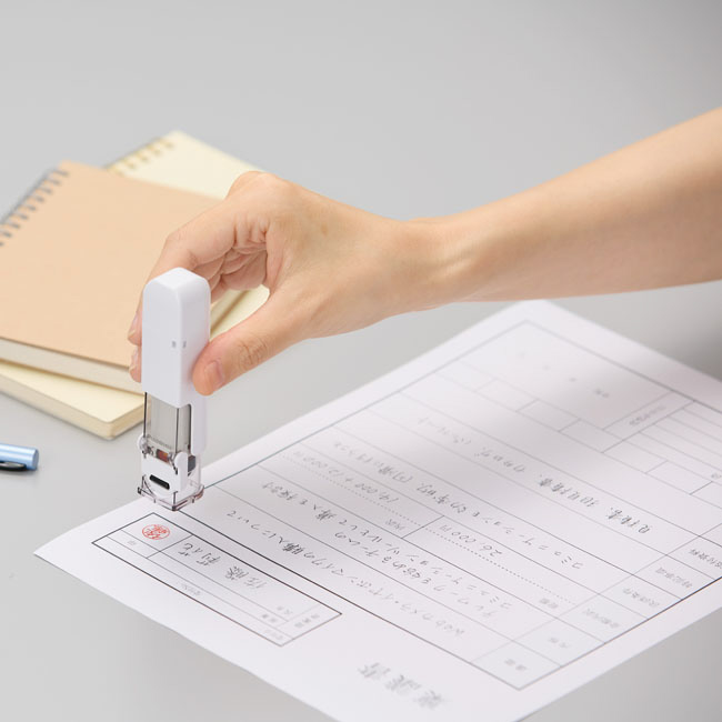 お手持ちのハンコを入れるだけで、ワンタッチでなつ印できる印鑑ホルダー「ハンコ・ベンリ」。印面ロック機能付き。使う時以外はしっかりロックできるので、安心して持ち運べます。ストラップ用の穴付き。携帯に便利。ストラップを付ければ、紛失防止にもなります。注:ストラップは付属していません。朱肉は交換可能なカートリッジ式。