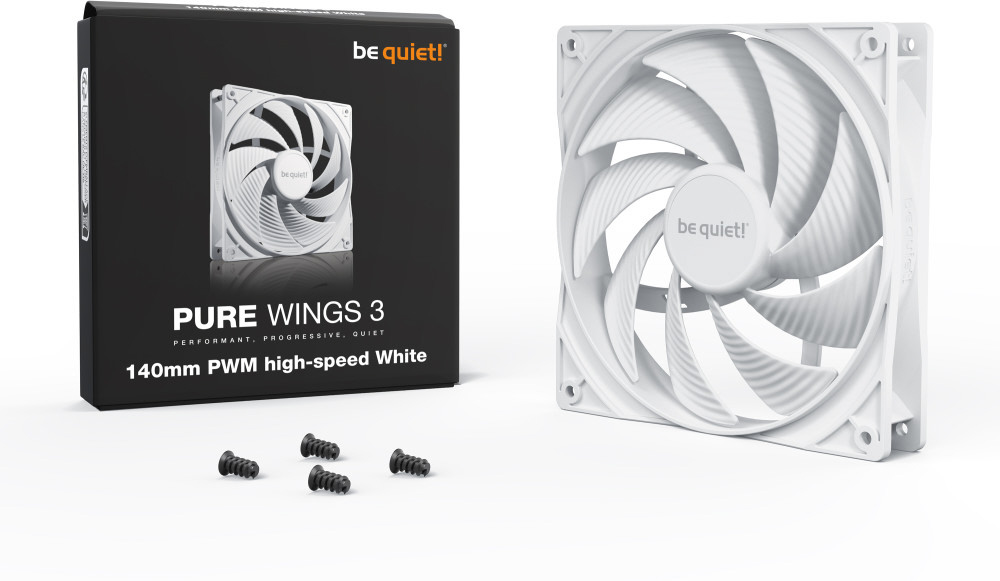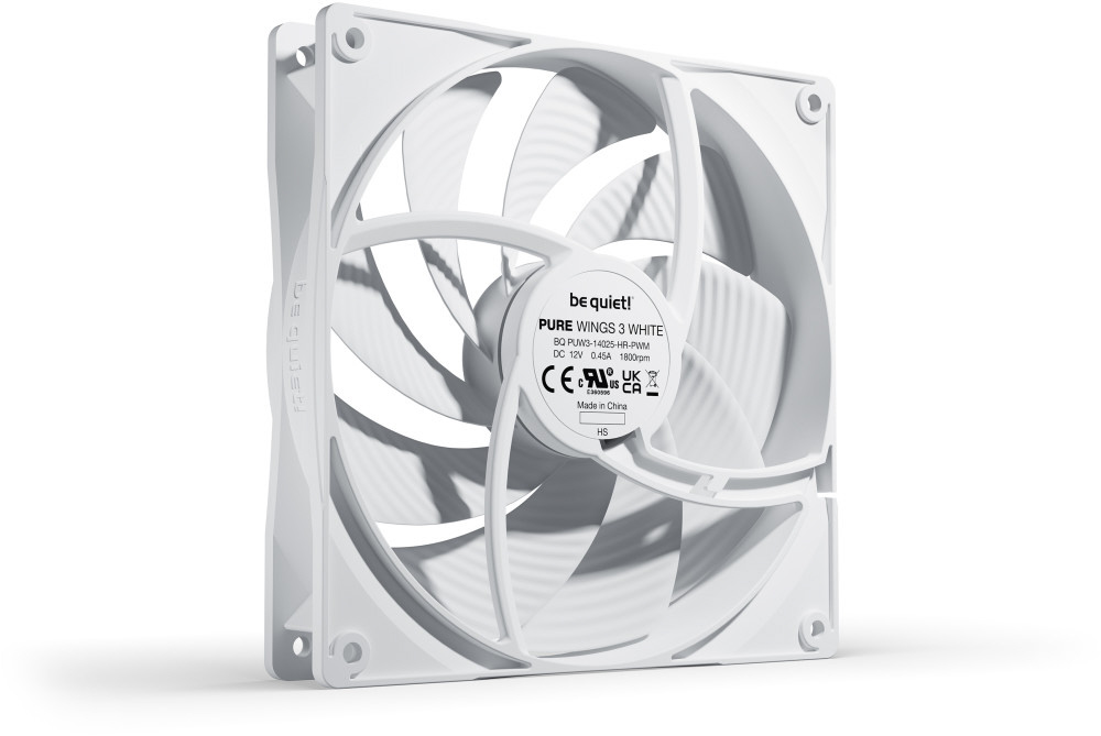 ■Pure Wings 3 140mm PWM高速ホワイトは、非常に低い最小回転数で動作し、非常に静かに動作します。