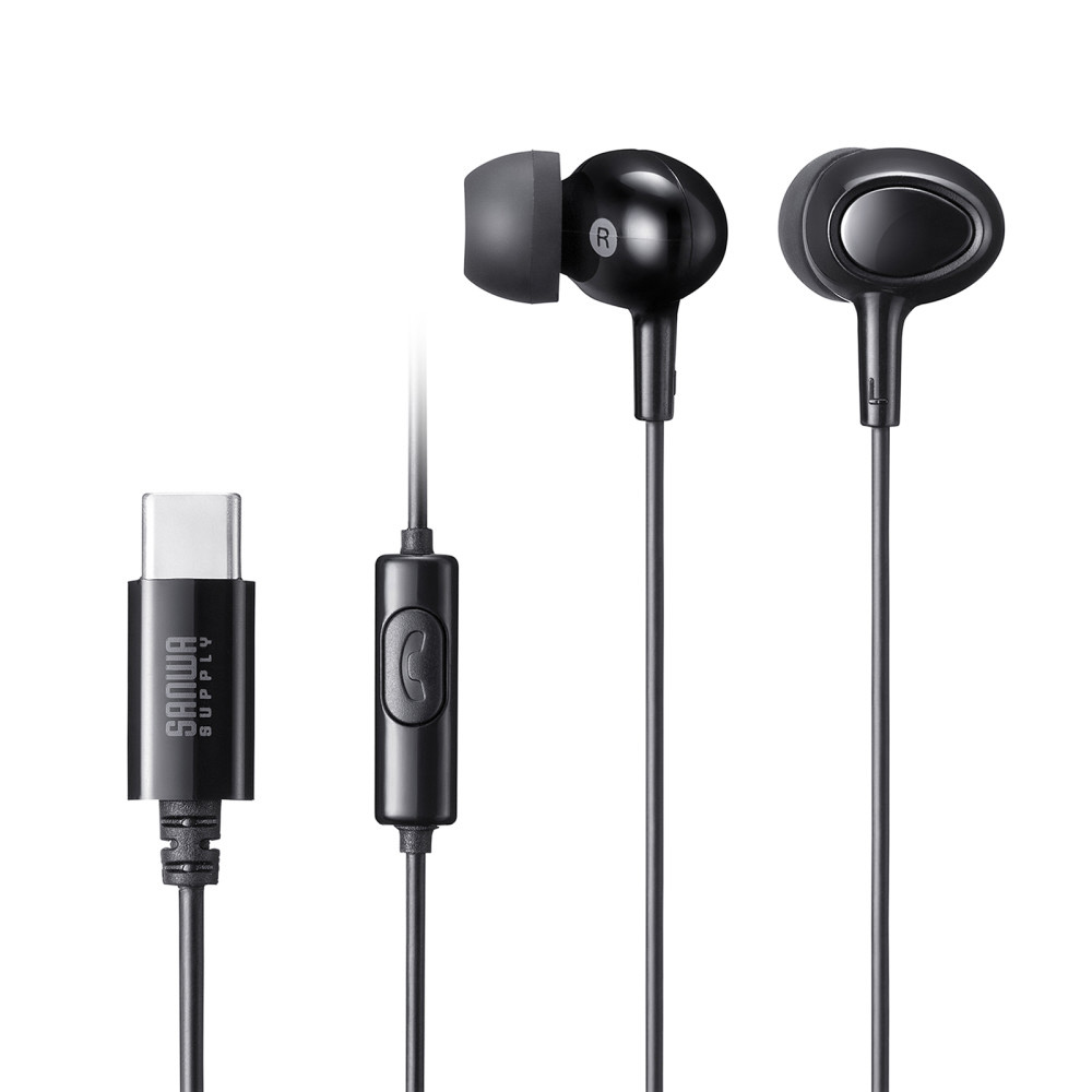 Type-Cポートのあるスマホやタブレット、パソコンで使えるマイク付きステレオイヤホン。