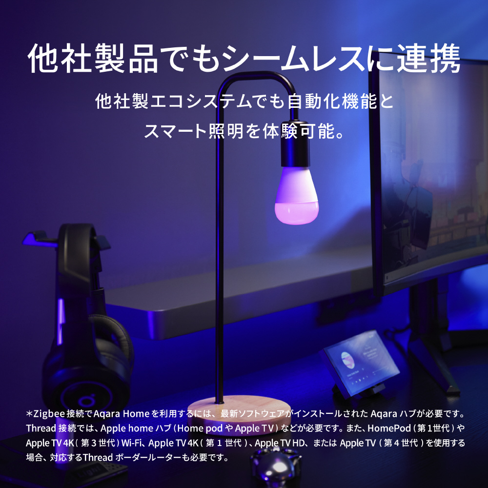Zigbee接続ではAqara Homeへ接続が可能。Thead接続ではApple、Google、AlexaなどのMatter対応エコシステムへのシームレスな接続が可能です。