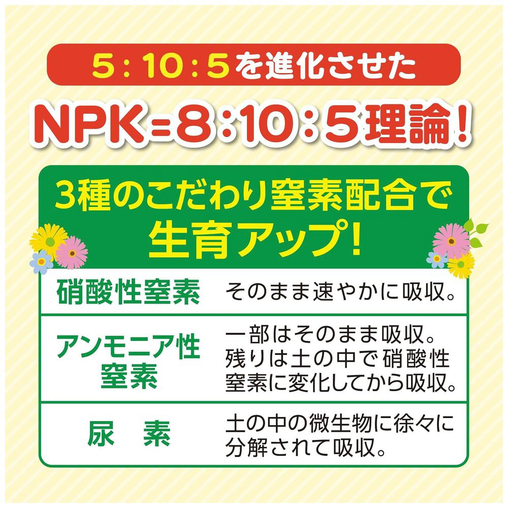 成分と配合量の設計を見直したグッドバランス花着きや葉色が良くなりグンと元気になる