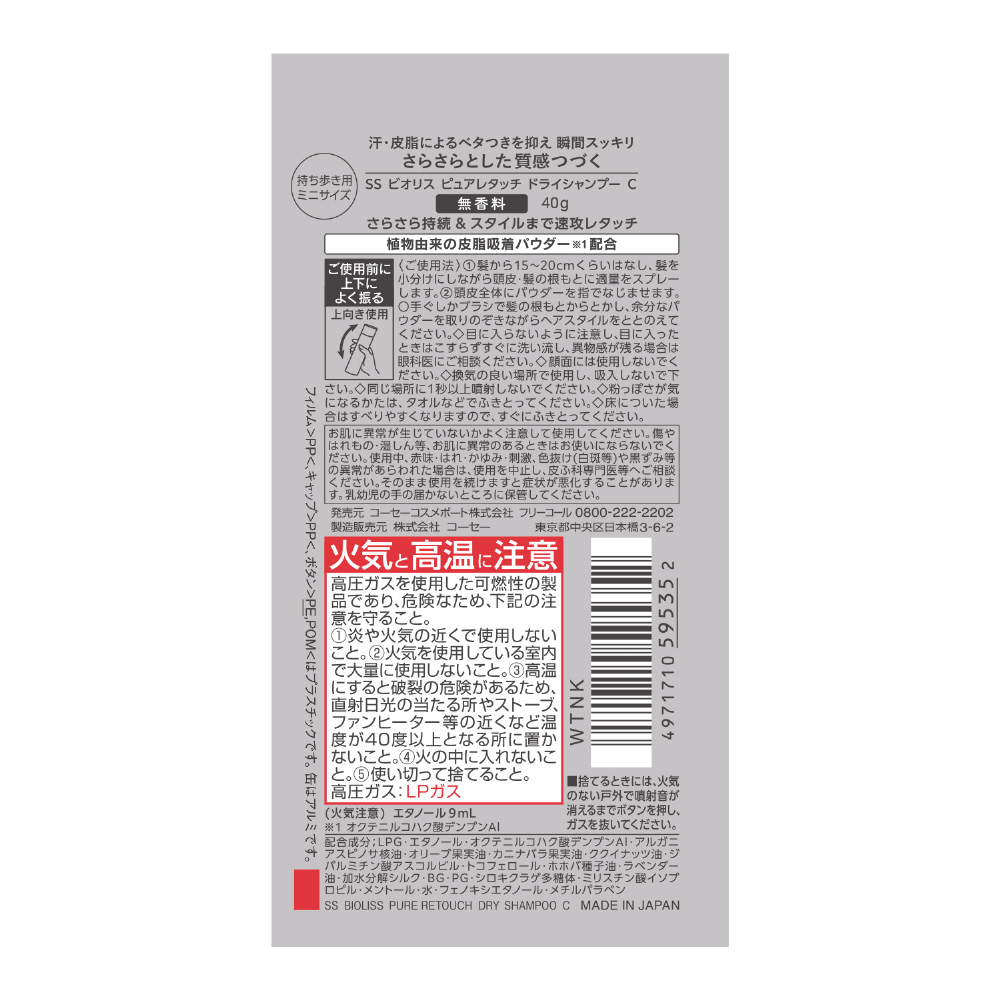 SS ビオリス ピュアレタッチ ドライシャンプー (無香料) ミニ40g
