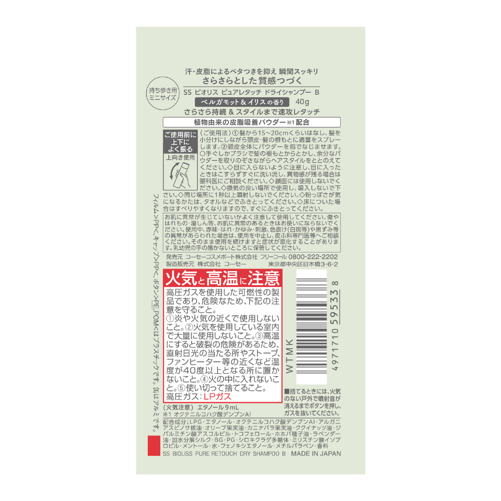 SS ビオリス ピュアレタッチ ドライシャンプー (ベルガモット&イリスの香り) ミニ40g